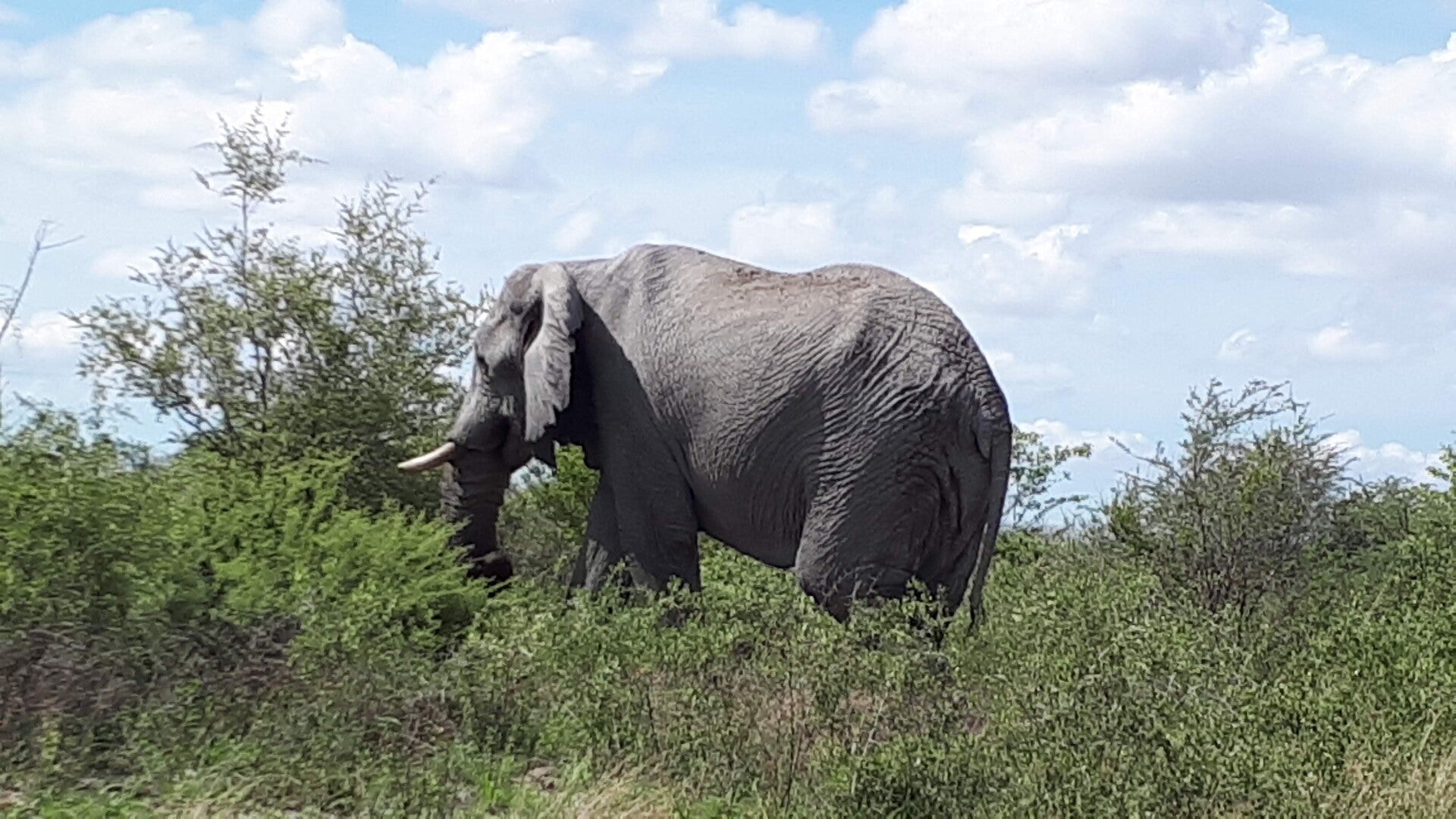 We vertrokken vroeg naar de Jump Street Chalets in Maun, de derde stad van Botswana. De weg ernaartoe was wat we ervan verwachtten: kraters van gaten in de weg, olifantenblokkades en zo nu en dan de autobanden en de schoenen insoppen. Dennis werd er krankjorum van, Max, Geertje en ik konden er wel om lachen.