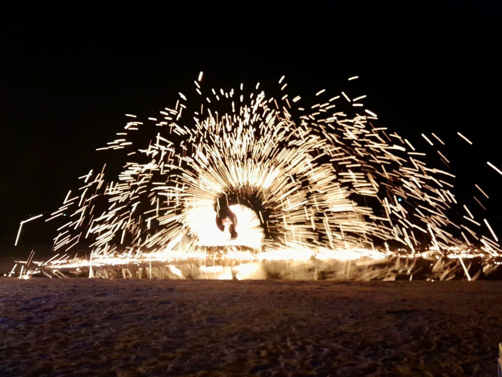 Die avond volgde er wel een kleine plottwist, want we verlieten Ban’s Diving Resort om in Sairee Center te gaan overnachten. Jullie bleven toch nog op Koh Tao? Ja, inderdaad, Koh Tao is nog steeds ons verblijfpunt, maar Sairee Center ligt een kilometer of twee noordelijker in het bruisende hart van het dorpje bij Sairee Beach (vandaar ‘Center’), een keuze die we maakten om een paar extra stuivers op zak te houden, maar ook omdat Bart en Inge die dag op dit paradijsje zijn beland en het natuurlijk wel leuk is om de komende dagen te vullen met onze Heesche vrinden en die avond begonnen we daar al mee. We hadden heerlijk Thais gegeten bij een idyllisch restaurantje aan het water en we sloten de avond af met biertjes onder het genot van weer een vuurshow (vaste prik op de stranden hier blijkt nu) aan het strand. Helaas gaat het verkassen van Ban’s Diving Resort naar Sairee Center wel ten koste van onze zwembaden, maar dan worden we in elk geval wél gedwongen om van onze luie reet af te komen en iets van het eiland te zien buiten de vele duiksites die het eiland rijk is.