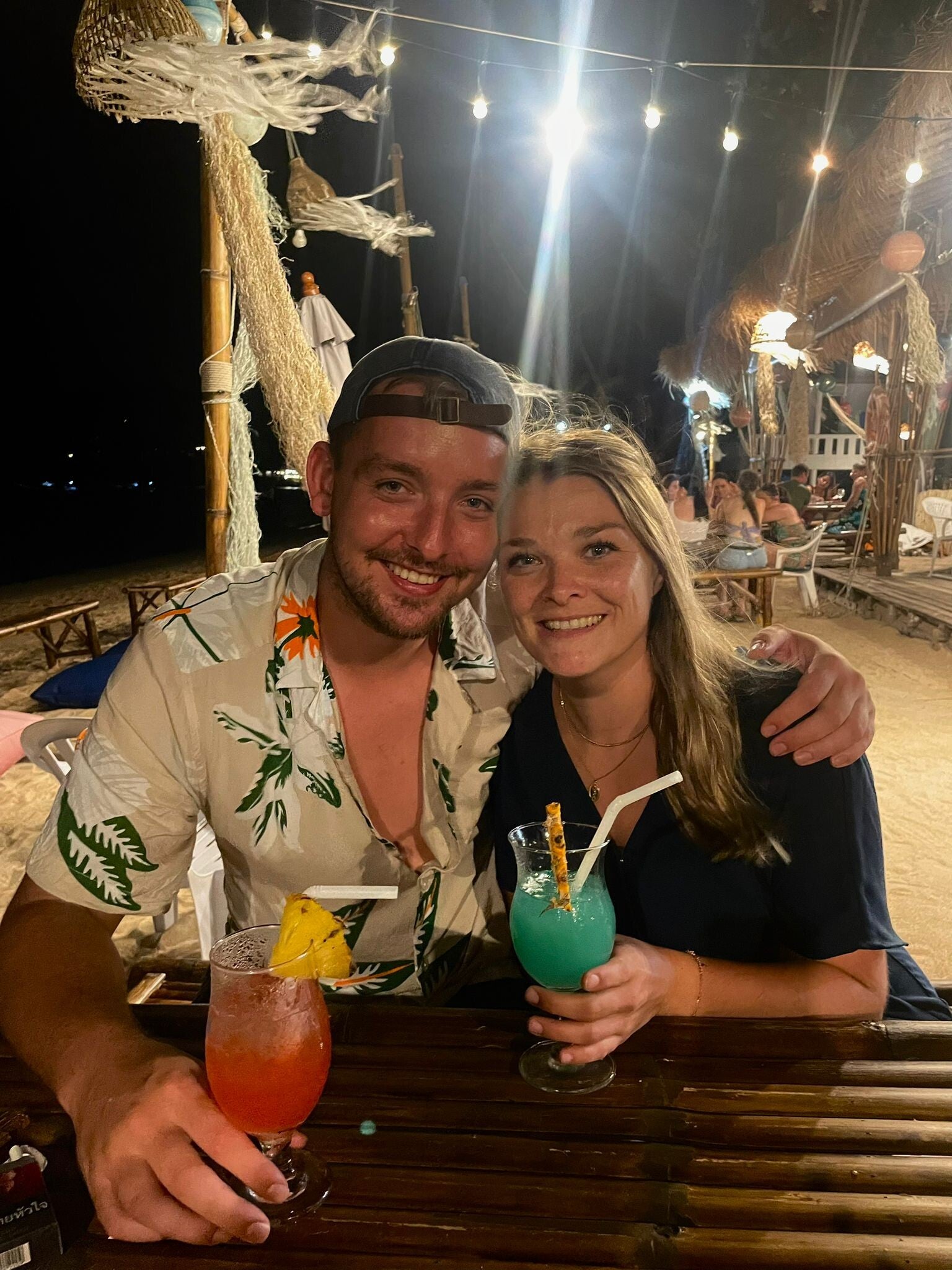 Zodoende besloten we maar wat te gaan eten bij een heel knus restaurantje een halve kilometer verderop. Tijdens het scooteren waren we er al langs gereden en toen hadden we al bepaald dat we daar die avond onze magen wilden gaan vullen. Eigenlijk aten we bij een soort strandtentje, maar dan niet aan het zand, maar aan de doorgaande weg. De vloer bestond louter uit zand en voor eventuele regenbuien zouden we door een rieten dak drooggehouden worden. De relaxte achtergrondmuziek en het houten restaurantsmeubilair maakten het plaatje compleet. Tijdens het eten crosten er een hoop toeristen langs ons op en zoals ik eerder al zei: let goed op. Om en nabij onze laatste hap werd het er eentje fataal: met een enorme knal ging er een Chinees ogende toerist onderuit vlak voor het restaurant en het eerste wat we hem hoorden roepen was: “take me to a hospital”. Uitkijken, uitkijken, uitkijken… We hebben ons lesje al geleerd zonder zelf de steen te hoeven stoten. Heel erg laat maakten we het niet meer, want Geertje en ik zouden de dag erna aan onze Advanced Open Water beginnen. Hoe dat is verlopen? Even geduld tot de volgende blog!
