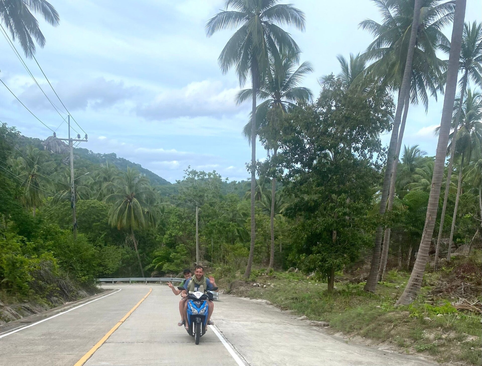 Een dag later was het dan echt tijd om het eiland te ontdekken. Bij ons Guesthouse huurden we twee ‘scooters’ voor 200 baht per stuk. Reken dat maar eens om: 5 hele euro’s en een paar centen om een hele dag een ‘scooter’ te huren. Opgevallen dat scooter telkens tussen aanhalingstekens stond? Goed opgelet, een scooter is hier namelijk eigenlijk gewoon een motor, in die zin dat die dingen enorm krachtig zijn en het eigenlijk niet helemaal toegestaan (de precieze regels zijn ons nou niet helemaal duidelijk) is om op die dingen rond te rijden zonder een motorrijbewijs, maar als je één keer in Thailand bent zie je iedereen en hun moeders op die krengen rondcrossen. Dus gaan wij dat ook proberen. Wel is voorzichtigheid echt geboden en moet je je niet als een idioot gedragen op zo’n ding en dat hebben we diezelfde dag meermaals gemerkt, maar daarover later meer.