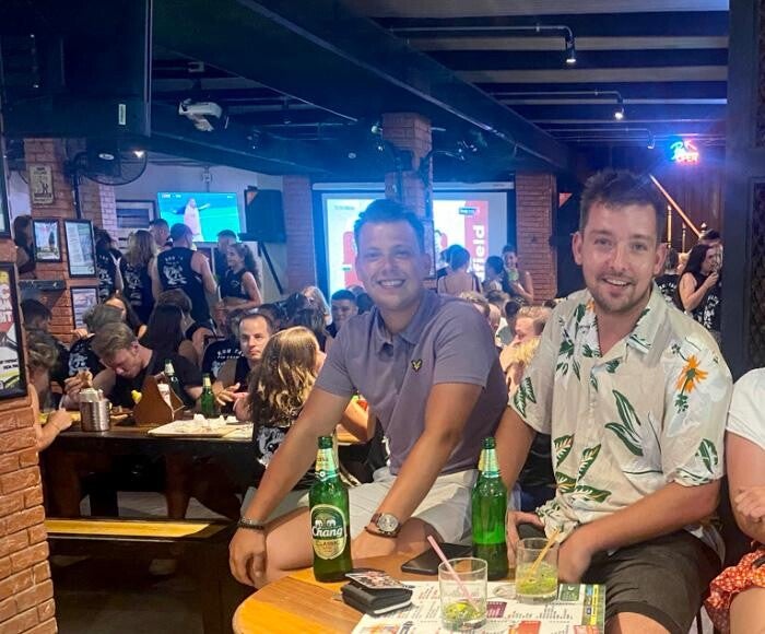 Een geweldige dag sloten we af met een minder leuke avond. Met z’n vieren zochten we een kroegje op om Ajax-Feyenoord te kijken en ik zal er maar niet te veel over uitweiden, maar als Ajacied kun je je wel voorstellen waarom ik zeg dat de dag met een tegenvaller werd afgesloten. Aanvankelijk was er toch nog sprake van ietwat naïeve hoop, zeker toen Bart (ook een lotgenoot en supporter van dezelfde vereniging) en ik onze eerste halve liter Chang voorgeschoven kregen, maar die hoop werd gauw met de grond gelijk gemaakt als een mier die vertrapt werd door een laars. Laat ik het er maar bij houden dat we vanuit een Ajaxperspectief in ieder geval het goede jaar hebben uitgekozen om weg te gaan en het geen wereldramp is mochten we een wedstrijd eens een keer niet van begin tot eind kunnen zien.