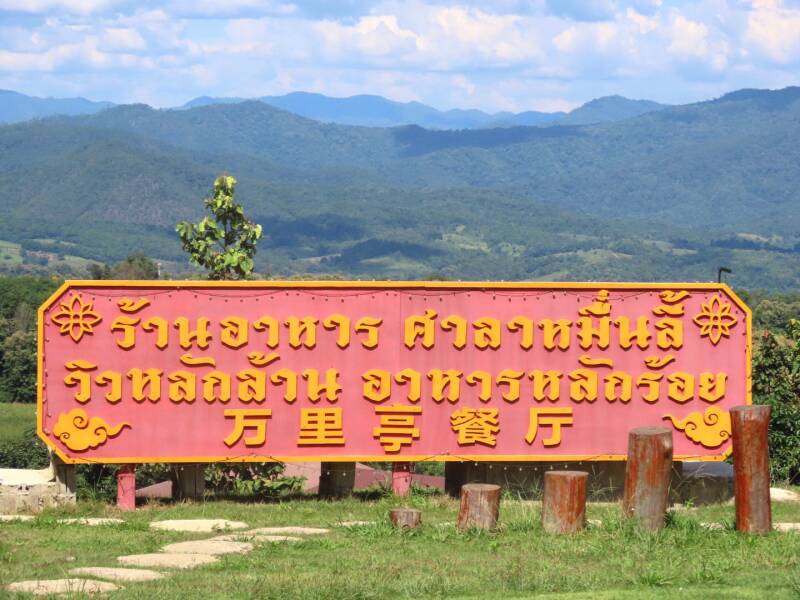 Een uurtje van Pai kwamen we in het dorpje Baan Sop Pong terecht en de magen begonnen reeds te knorren dus werd het tijd voor een lunch. Dat bleek een heel avontuur te zijn: Baan Sop Pong was namelijk totáál niet ingericht of bedacht op toeristen. Geen Engelstalige naamborden, laat staan dat er ook maar iets te vinden was met een enigszins Westerse uitstraling. Maar dat is alleen maar leuk. We vonden een tentje met vriendelijk glimlachende vrouwtjes en toen we gingen zitten, bleken ook zij geen woord Engels te spreken. En met geen woord, bedoel ik ook echt geen woord. Geen goedendag, geen dankjewel, helemaal niks. Toen ze in vloeiend Thais uitlegde wat ze allemaal in de aanbieding had, schoot Geertjes vinger richting de helderblauwe hemel bij het horen van het woord Pad Thai, maar aangezien die niet tot mijn favorietenlijst behoorde, probeerde ik haar drie keer de menukaart opnieuw te laten vertellen (wat ze al lachend wist te bewerkstelligen) en uiteindelijk werd onze gemeenschappelijke taalbarrière doorbroken door een duim die ik opstak op het moment dat ze naar een grote pan wees. God weet wat er zo dadelijk op mijn bord verschijnt, maar we gaan het meemaken.
