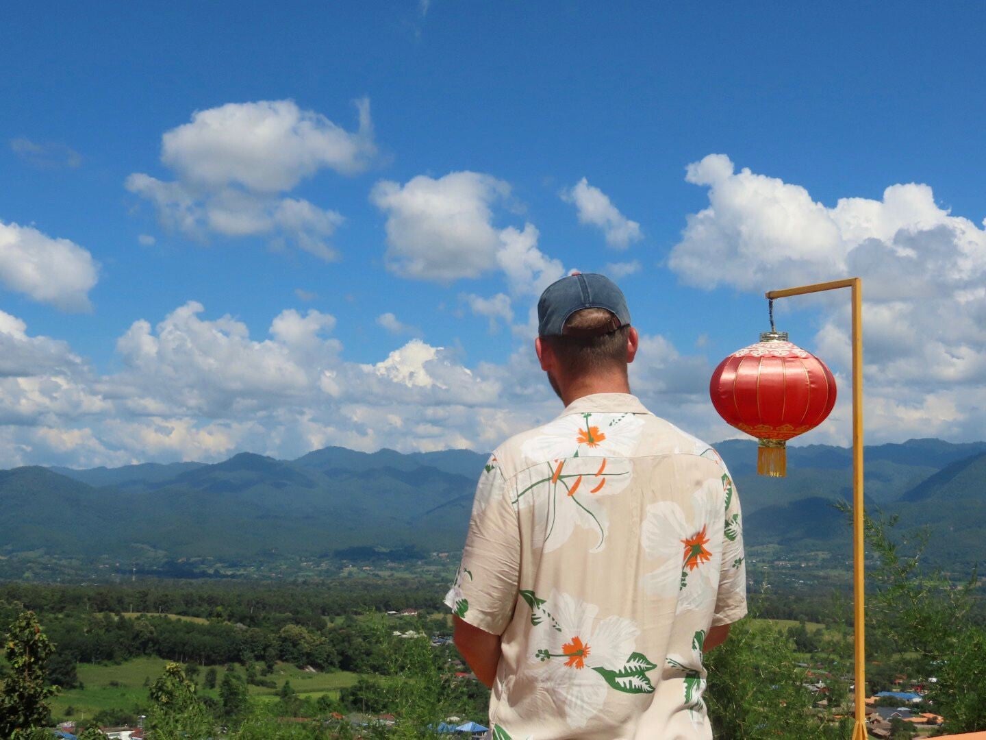 Pai is een klein dorpje in het noorden van Thailand dat behoorlijk dicht bij de grens tussen Thailand en Myanmar ligt. Al veel over gehoord en we moesten er echt heen volgens zeker drie bronnen die we gesproken hebben, dus op 4 oktober was het zo ver. De route van Chiang Mai naar Pai wordt vaak per scooter afgelegd omdat het simpelweg een fantastische route is om met de scooter te rijden. Waarom? 762 bochten, dames en heren. En dat door een prachtig, groen, bergachtig landschap. Wij natuurlijk met de scooter, toch? Nee, helaas. We hoorden dat er veel politiecontroles waren op de route, dus besloten we met de minivan te gaan. Er gaan verhalen de ronde over reizigers die bussen vol kotsten omdat chauffeurs als kamikazepiloten over het wegdek vliegen, dus we hielden ons hart vast, maar uiteindelijk viel alles reuze mee en stonden we na 3,5 uur zonder ook maar een beetje wagenziek te zijn geweest bij Pai Forest Resort, onze plek van overnachting de komende twee nachten, net buiten het dorpje Pai.
