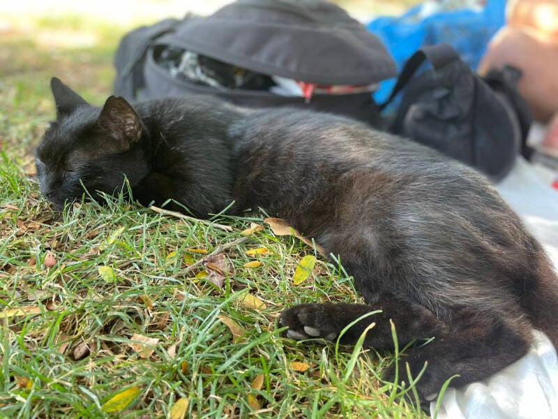 De rest van de middag brengen we in het kustpark door. Geertje gaat nog even met haar voetjes in de Zee van Marmara staan, waarna Geertjes sjaal/hoofddoek een nieuwe functie krijgt als badhanddoek en de namiddag brengen we door met een spelletje, een paar biertjes en zo nu en dan dichte oogjes. Ook zijn er weer een tweetal totaal niet schuwe katten die ons een halfuurtje gezelschap komen houden.