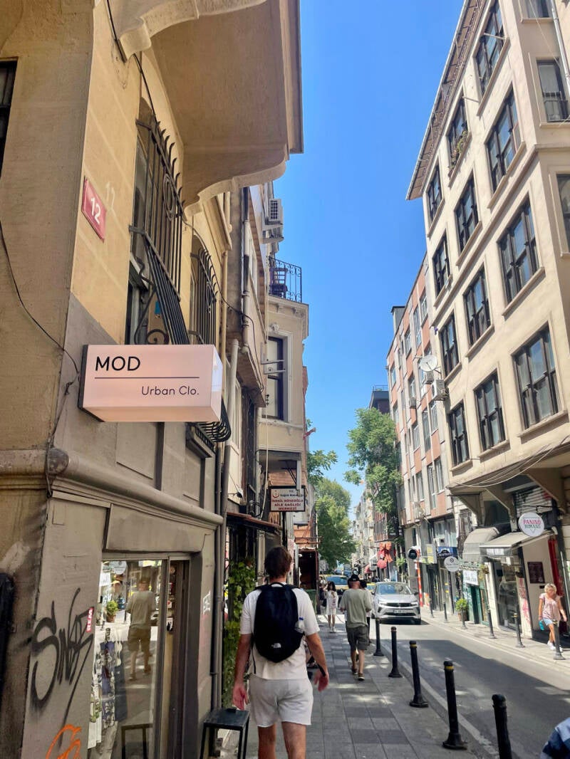 Met gevulde magen besloten we wat rond te slenteren. Het valt op dat we erachter komen dat Istanbul helemaal niet zo islamitisch is als men denkt. In Sultanahmet zagen we veel vrouwen een hoofddoek dragen, maar dat is in het toeristische gedeelte en Istanbul is ook enorm in trek bij de Arabische wereld, maar na een hele dag in Kadiköy rondstruinen, hebben we het aantal hoofddoek dragende vrouwen op twee handen kunnen tellen. We slenteren wat door, door een winkelstraat en een straat met kroegen en Geertje poseert zelfs nog even voor een mooie kerk. Het zweet gutst van ons voorhoofd en over onze ruggen, want vandaag voelt als de heetste dag tot nu toe.