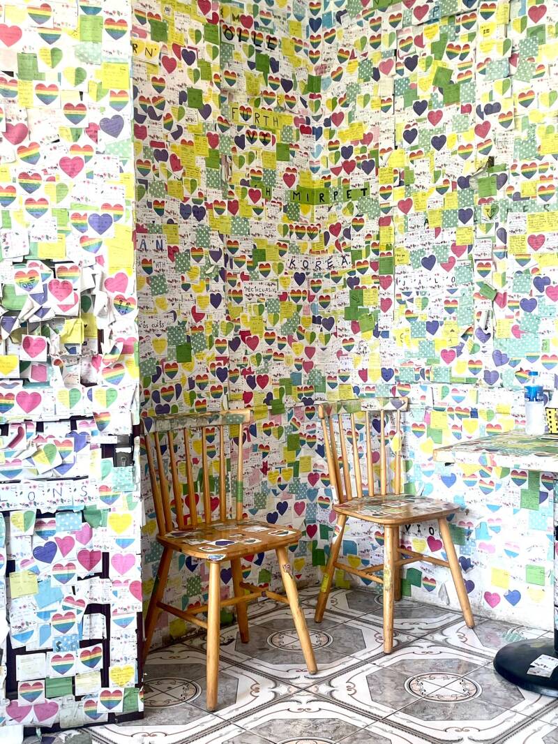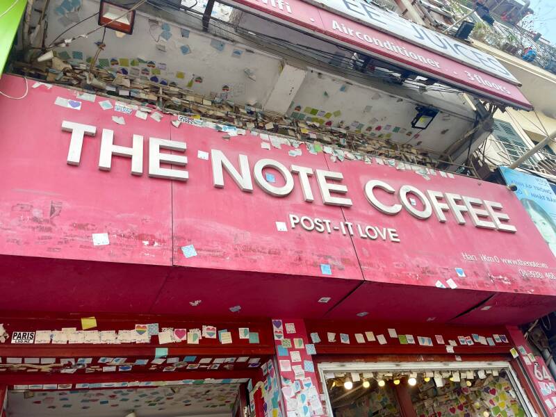 - Note Cafe. Een café dat vol hangt met post-its. Niet alleen de muren, maar ook de stoelpoten, de lampenkappen, de kabels en de draden. Wat wil een mens nog meer?