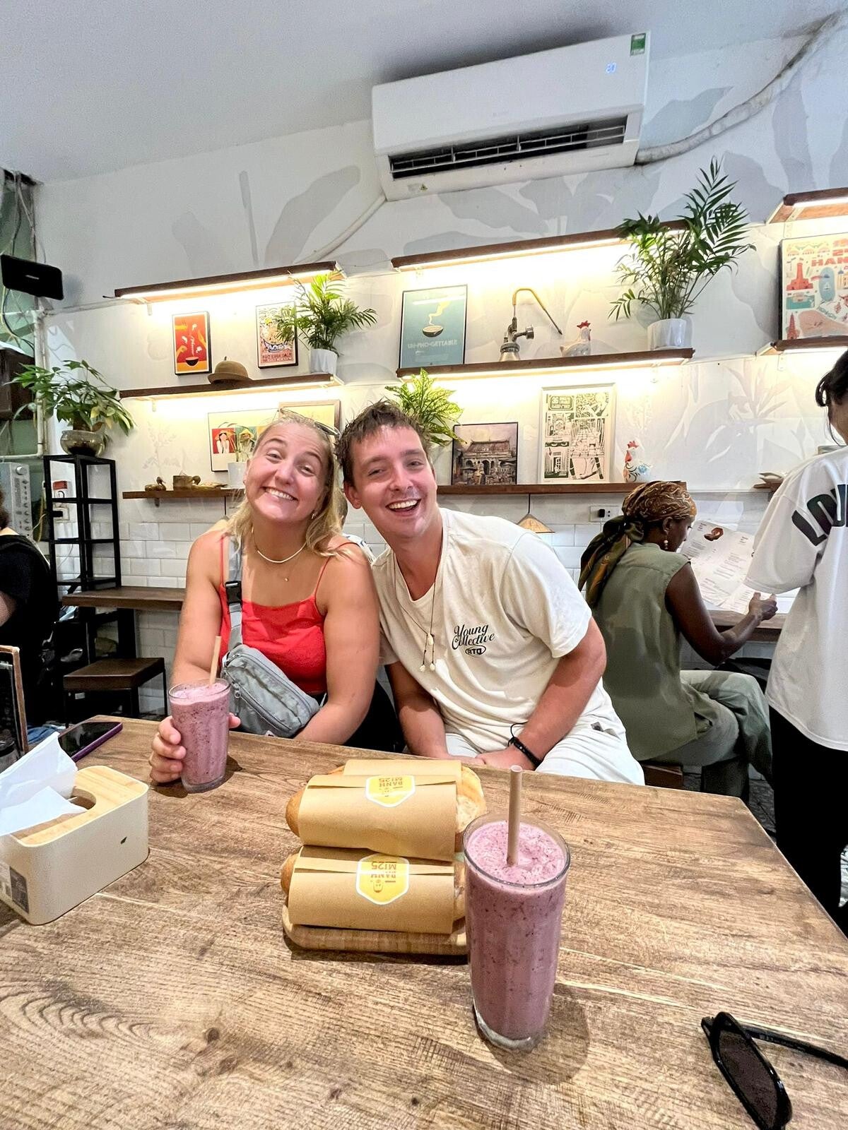 Op het moment dat we wakker worden, zitten Sophie en Guus al in Ha Giang. Wij gaan die dag niet naar Ha Giang, maar we gaan naar Hanoi, de hoofdstad van Vietnam. En dat doen we niet met z’n tweeën: Manon en Anandi gaan ook mee. Of ja, zij hadden de bus eerder geboekt, dus wij gaan eigenlijk met hen mee.