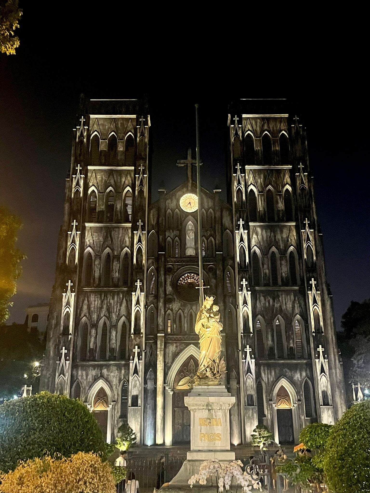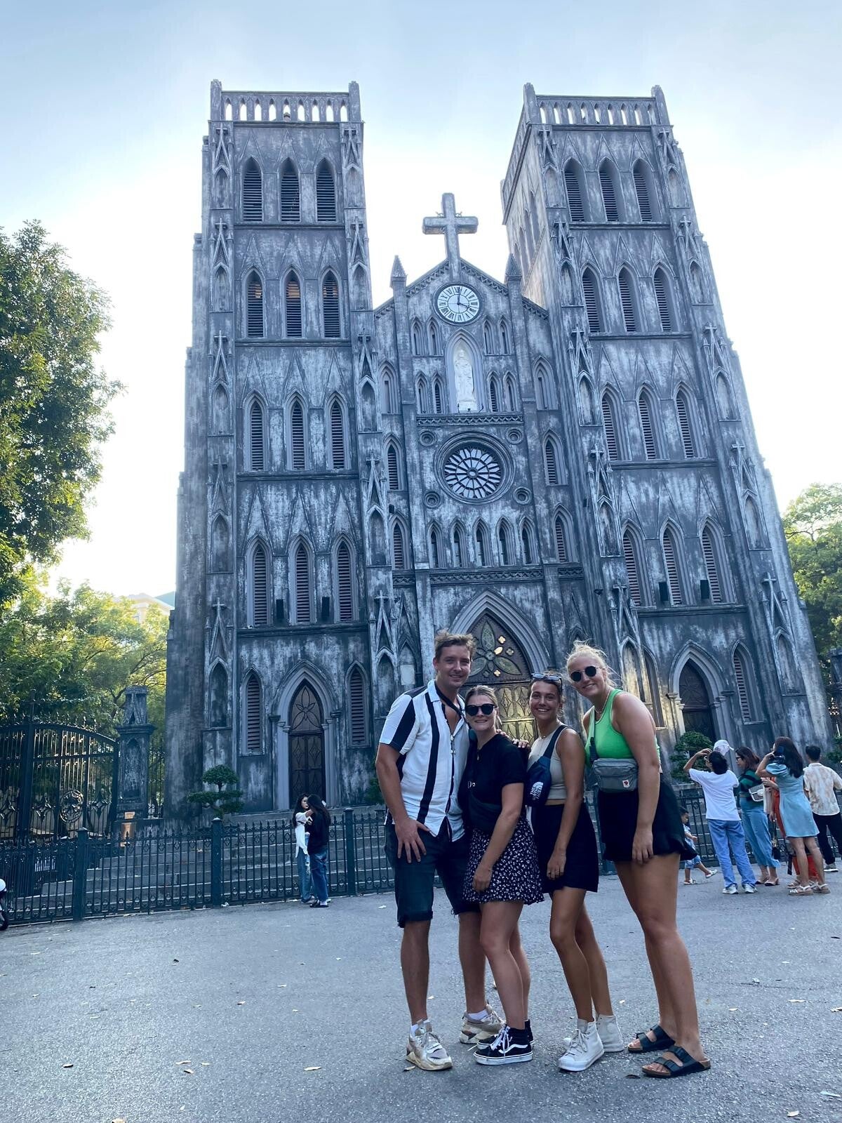 Geertje houdt het hierna ook voor gezien want ook zij legt het af tegen haar eigen lichaam en de rest van de middag liggen we samen op bed. Hanoi is met alle drukte geen ideale plek om lekker rustig uit te zieken, maar je moet er maar het beste van maken. Voorzien van een extra dosis paracetamol sluiten we voor het avondeten weer aan bij onze Overijsselse en Drentse vriendinnen. Waar eten we? Take Taco! Nee, niet dezelfde, Take Taco kent twee vestigingen in Hanoi en de tweede vestiging ligt langs de prachtige St. Joseph Cathedral die er na zonsondergang fantastisch uitziet. Onze hunkering naar Mexicaans voedsel is nog altijd niet gestild en waar ik een Caesar Salade naar binnen werk, ontfermt Geertje zich over quesadilla's met kip, werkt Manon een kipburrito naar binnen en verorbert Anandi een goed uitziende taco. Na ons Mexicaanse avondmaaltje, vervolgen we onze weg naar Train Street, misschien wel dé grootste toeristische trekpleister van Hanoi.