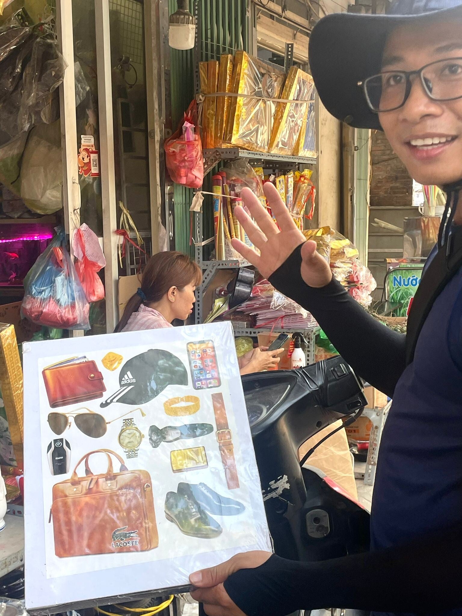Bij een klein winkeltje stoppen we om wat te leren over een fascinerend stukje Vietnamese cultuur. In de etalage zien we verschillende dozen. De dozen bevatten allerlei waren variërend van een driedelig pak tot sigaretten, horloges, telefoons en kaartspellen. Kortom, van alles. Het bijzondere hieraan is dat alles in de dozen van papier is. Waarom zou je dat in godsnaam kopen? Nou, daar komt-ie: de Vietnamezen geloven in een leven na de dood en wanneer iemand sterft, heeft diegene eigenlijk niets materieels meer. Stel: je opa komt te overlijden. Wat doe je dan om je overleden opa in het hiernamaals niet naakt als Adam rond te laten rennen? Dan koop je zo’n verrassingsbox en steek je ‘m in de fik. Het idee is dan dat alles wat je verbrandt, bij je opa weer tevoorschijn komt en blijkbaar verandert papier in die nieuwe wereld voor je opa in het oorspronkelijke materiaal. Natuurlijk ontferm je de vlam van je aansteker niet over een echte iPhone 13, dus is het wel handig dat er ooit iemand bedacht heeft dat papieren replica’s van alle attributen die je maar kunt bedenken ook volstaan en dat dat vervolgens voor waarheid aangenomen wordt.