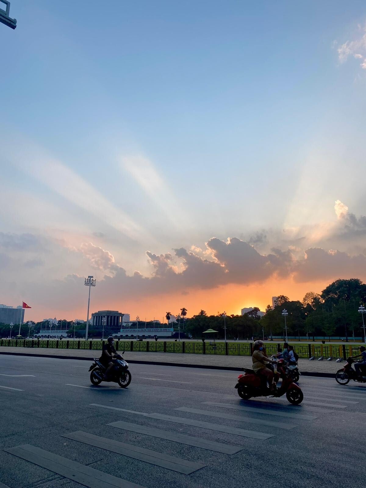 Ik ben weer afgedwaald. Sorry. Ik ga door. Laatste stop van de dag was het Ho Chi Minh Mausoleum. Het mausoleum is gesloten, dus we konden niet naar binnen, maar aan alles voel je dat dit een enorm belangrijke plek is in Hanoi en in combinatie met de ondergaande zon, bood het Ho Chi Minh Mausoleum een prachtig aanzicht. In dit Mausoleum ligt Ho Chi Minh gepreserveerd (weer zo’n functioneel gekozen naam voor een gebouw). Niet begraven, niet gecremeerd, maar gepreserveerd. Een soort van permanent opgebaard. Ho Chi Minh is, zoals je waarschijnlijk wel weet, een van de allergrootste – misschien wel de allergrootste – volksheld van Vietnam en een naam die je denk ik nog heel erg veel gaat lezen. Vergelijk het maar een beetje met Louis van Gaal die tevens ook nog president voor dertig jaar is geweest en de nobelprijs voor de vrede driemaal in de wacht heeft gesleept. Niet dat Ho Chi Minh dat allemaal op z’n palmares heeft, maar voor de gemiddelde Vietnamees is die man wel zo belangrijk, alsof hij dat bereikt heeft. Na de Vietnamoorlog bij de vereniging van Noord en Zuid-Vietnam is de voormalig Zuid-Vietnamese hoofdstad Saigon als verenigingsgeste zelfs naar hem vernoemd en Saigon is nu dus, verrek, Ho Chi Minh Stad. Dat was een hele meneer dus, onze Ho Chi.