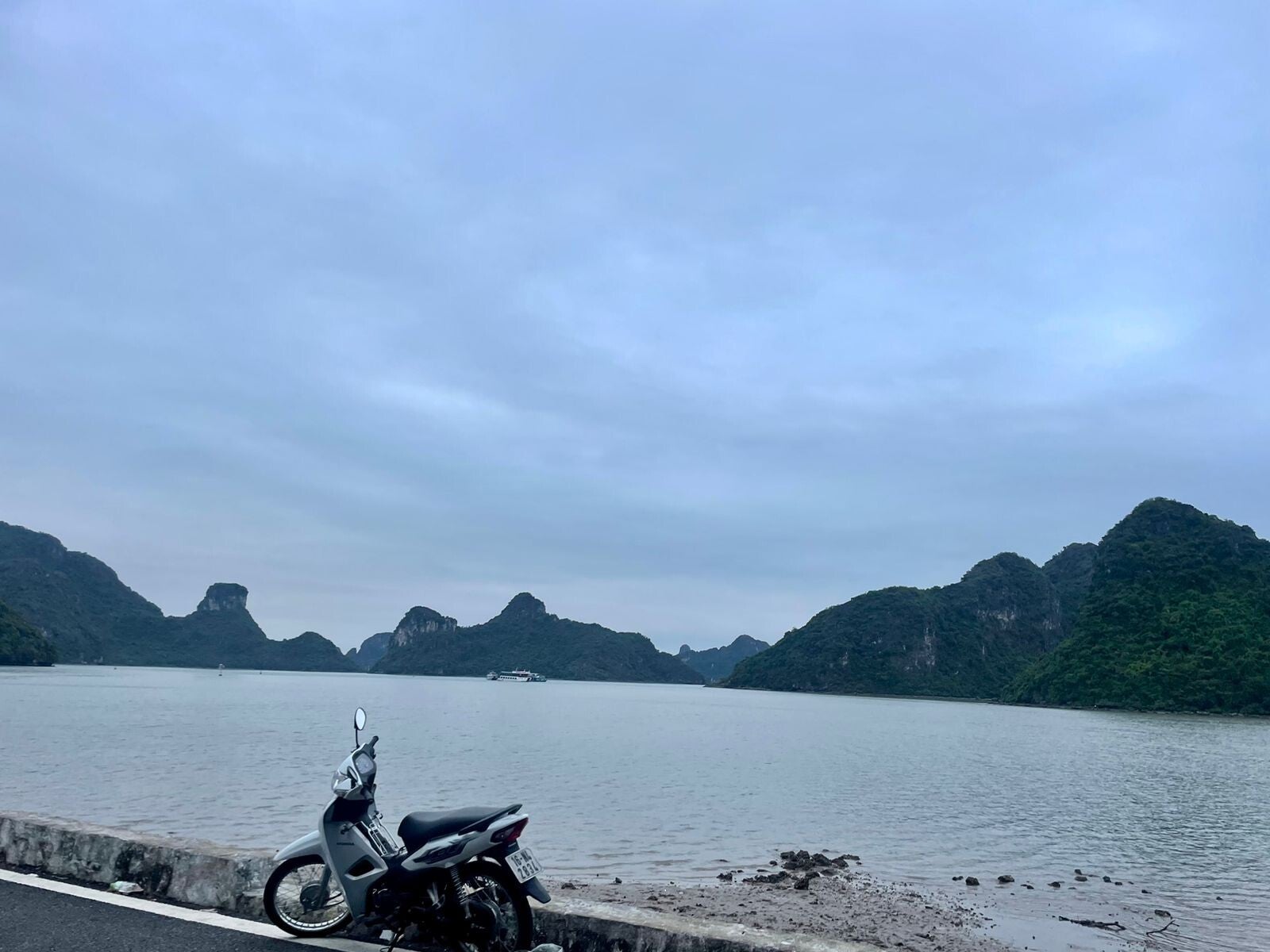 We scooteren nog even door naar de noordkust van Cat Ba. Onderweg zijn we getuigen van prachtige rotsformaties, een schattig dorpje en vooral heel veel groen. Vietnam is dichtbevolkt, maar op Cat Ba merk je dat niet zo zeer. De laatste kilometer kenmerkt zich door een kustlijn en we zijn hier maar om één reden heen gereden: onszelf alvast een voorproefje geven op Ha Long Bay, de baai die we morgen gaan ontdekken.