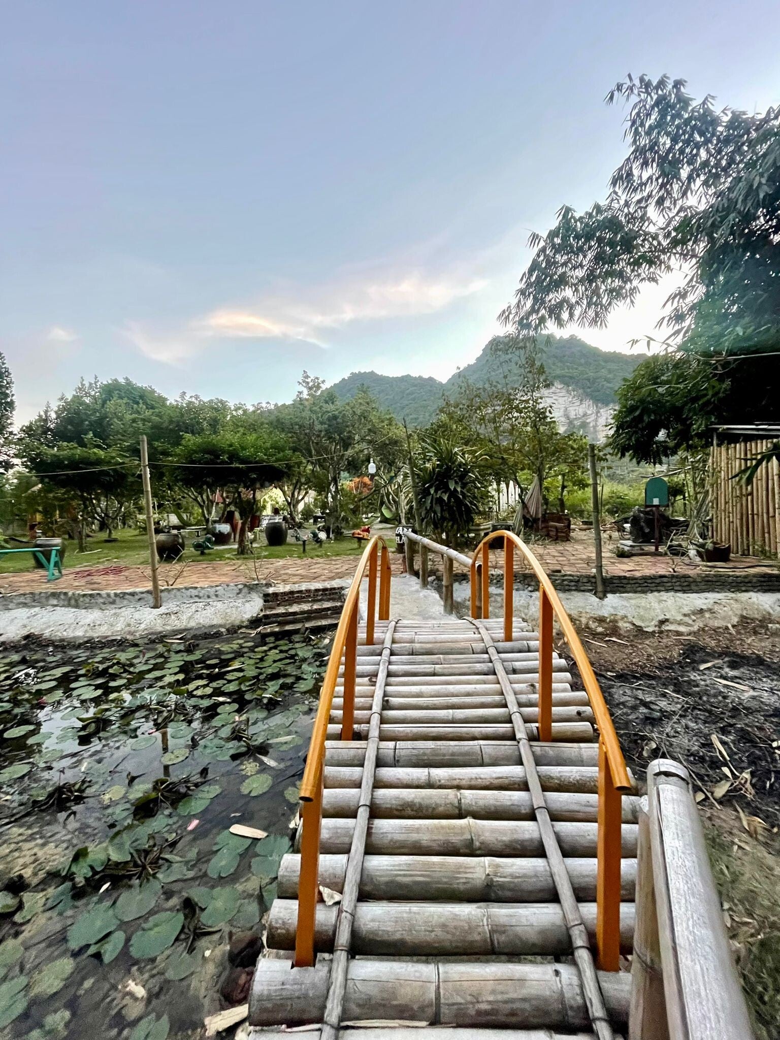 In de namiddag arriveren we al bij onze homestay voor de komende drie nachten: Cat Ba National Park Homestay, een fantastisch guesthouse in een klein dorpje een paar kilometer buiten Cat Ba Town, en met dit heuse miniresort hebben we voor 4,50 per persoon per nacht toch weer een prachtig pareltje te pakken. We worden hartelijk begroet door drie honden en Gekko. Niet een gekko, maar Gekko, de naam van de jongeman die verantwoordelijk is voor het voortbestaan van deze homestay. Het woord ‘homestay’ geeft de indruk dat je bij een local op de bank slaapt en ’s avonds aanschuift bij het eten dat door moeder de vrouw zelf bereid wordt, alvorens je uit respect alle Boeddhistische rituelen lichtjes ongemakkelijk mee scandeert, maar niets is minder waar: ieder guesthouse dat ook maar een beetje buiten een stads- of dorpscentrum ligt, krijgt zonder enige moeite het etiket van ‘homestay’ op geplakt. Dat is niet iets Aziatisch, maar puur iets Vietnamees, want in Laos of Thailand zijn we dit fenomeen nog niet tegengekomen. Desondanks mag dit de pret niet drukken en hoewel voor Geertje de rattenvilla in Luang Prabang en de Wualai Boutique in Chiang Mai (fantastisch plekje, te weinig credits gegeven) qua overnachtingsplekken nog superieur zijn, is Cat Ba National Park Homestay voor mij de nieuwe nummer één. Een fantastische host in Gekko, drie lieve hondjes (waarvan de kleinste – en de leukste – door ons Fluffy wordt genoemd), een zwembad, een tuin met kinderglijbanen, hangmatten en beeldjes, een prettige gemeenschappelijke ruimte en overal kleurrijke verlichting. En een lekker bed. Ook niet geheel onbelangrijk.