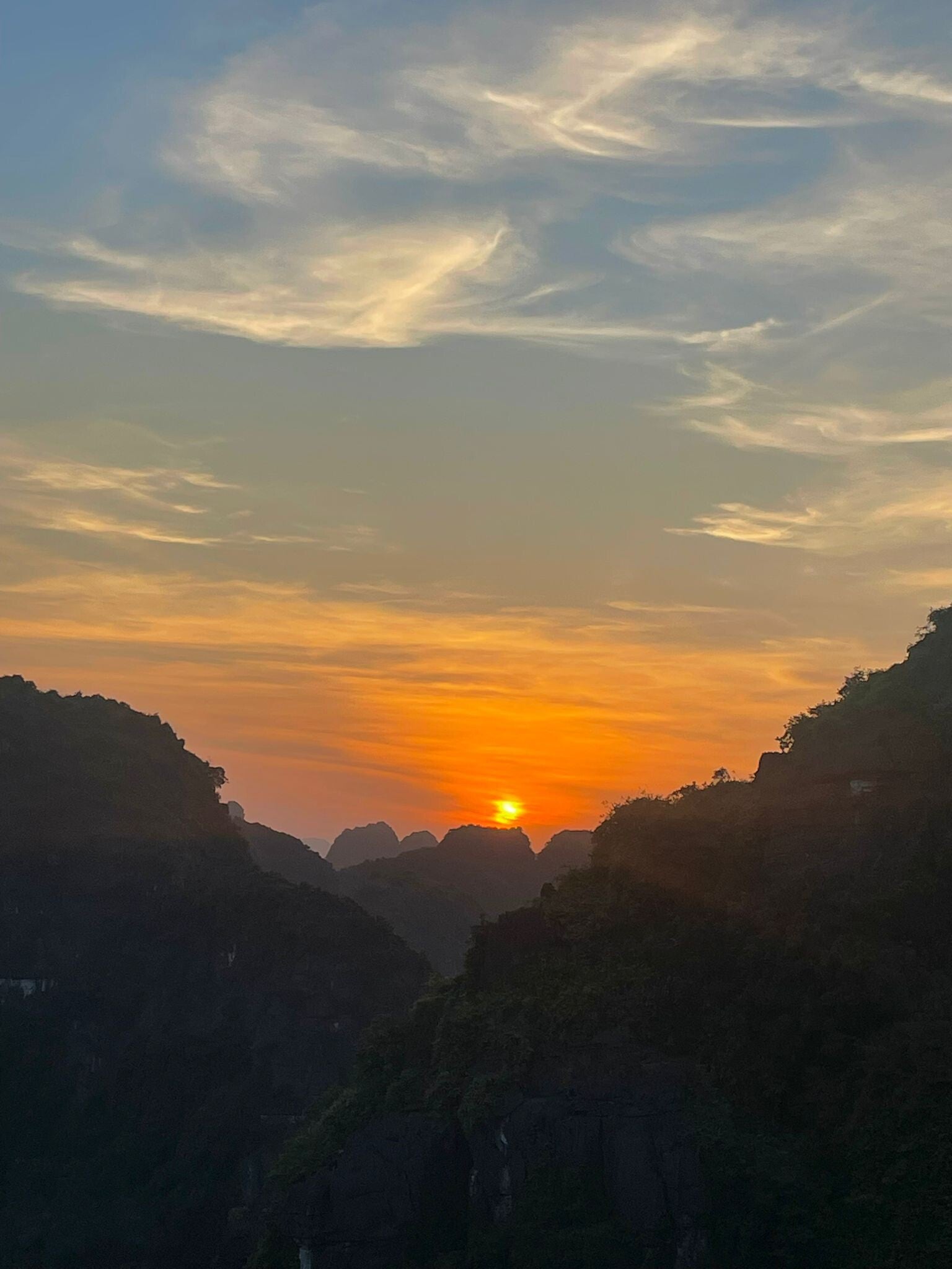 De zonsondergang op Mua Cave Viewpoint was mooi, maar toch wel een tegenvaller en weer een ultiem voorbeeld van de toeristenparadox. Na 464 treden beklommen te hebben (ik heb geteld, je moet wat na het zoveelste viewpoint), arriveren we op de top van een karstberg die qua mensen per vierkante meter wel iets wegheeft van een illegale kippenstal. En dat is ook de paradox: een ervaring of een plek wordt zo veel minder mooi doordat het stampvol met toeristen staat, maar tegelijkertijd ben je zelf ook een onderdeel van die menigte. We hadden deze drukte wel kunnen voorzien, want overal wordt dit plekje geadverteerd als dé plaats om de zonsondergang te bekijken, dus we snijden onszelf ook een beetje in de vingers. Wat ons betreft: doe Mua Cave Viewpoint overdag of misschien heel vroeg bij zonsopkomst, maar mijdt die godvergeten zonsondergang. Dit plekje had zo veel mooier kunnen zijn.