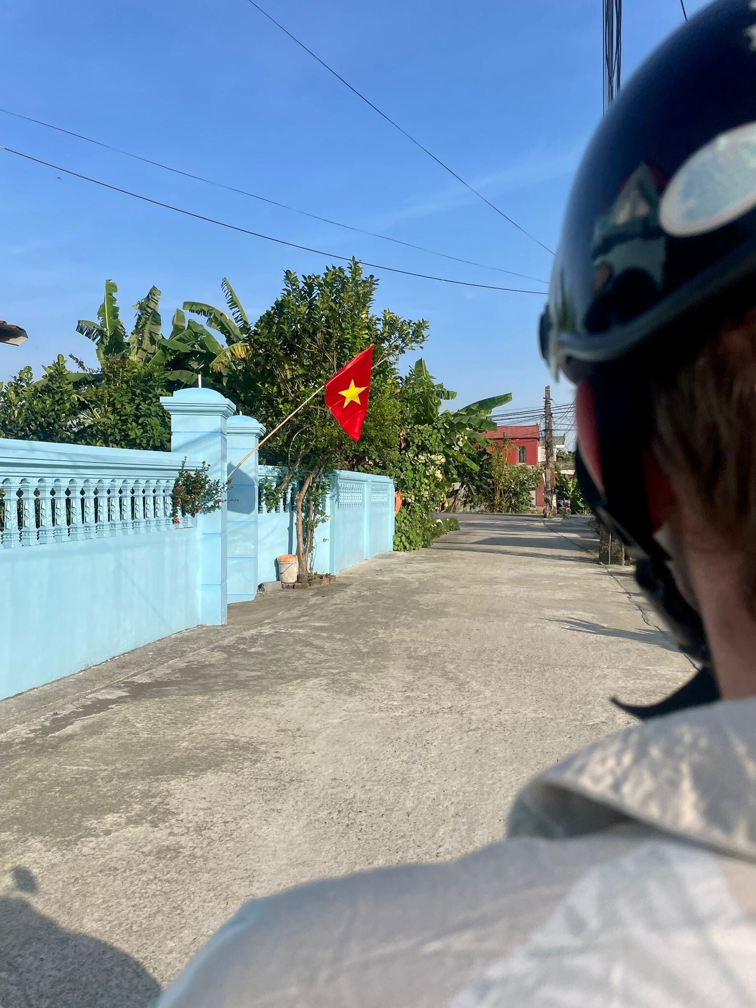 Na de boottour in Trang An (een aanrader dus) eten we een matig Vietnamees soepje als lunch en scooteren we door naar Kenh Ga, een drijvend vissersdorpje op een halfuurtje van Trang An. We rijden het gebied met de karstbergen uit en rijden uiteindelijk over een dijk heen die omgeven is door diezelfde rijstvelden die nu in polders zijn veranderd. Een dijk langs polders. Hoe wil je je nog beter in Nederland wanen? We vinden echter geen drijvend vissersdorpje, maar een gewoon dorp waar de bewoners met open monden naar vier Europese blankhoofden op scooters kijken. Guus en Sophie maken nog even een paar promofoto’s voor Guus’ powerbanks (googel even op Heko Solar en bestel er vandaag nog een, want die krengen werken als de brandweer) en eigenlijk was het scooteren door een doodnormaal, niet opzienbarend Vietnamees dorp ook wel weer leuk. Later kwamen we erachter dat het drijvende vissersdorpgedeelte van Kenh Ga aan de andere kant van de rijstvelden/polders lag, maar ach, wat zou het.