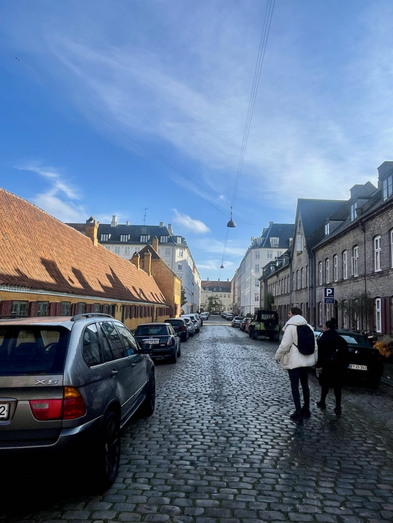 De volgende stop is een persoonlijke favoriet in København: Nyhavn. Je kent de plek wel: hét iconische kanaal van København met al die gekleurde huisjes aan weerszijden van het water. Dat vraagt om een heerlijk biertje aan de waterkant. Dus dat doen we! Nyhavn is een prachtig stukje van de Deense hoofdstad en de gezelligheid spat ervan af. Het warme herfstzonnetje en de helderblauwe lucht helpt daar ook wel aan mee.