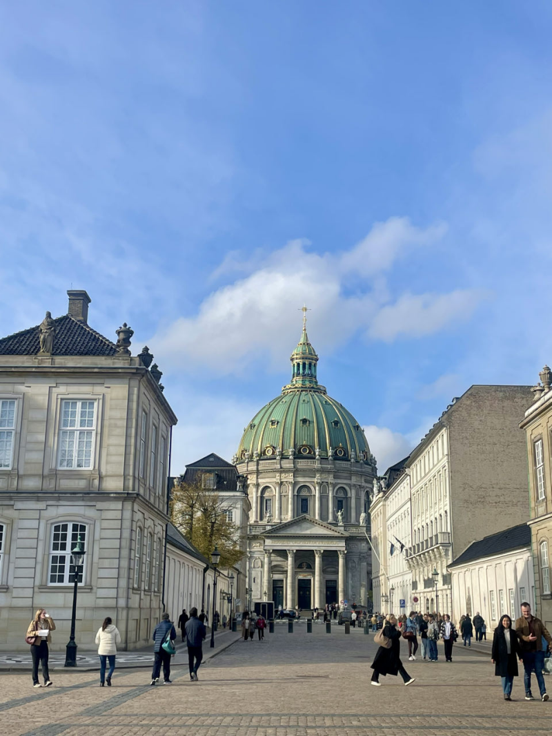 Als je dan toch naar die Frederiks Kirke bent geweest, loop dan ook even door naar Amalienborg, het plein waar de Deense koning woont, waar z'n moeder woont en waar z'n administratie en de rest van z'n hele mikmak zit. Eerst hadden de Denen een koningin, maar die besloot plots met pensioen te gaan, dus nu hebben ze een koning. Je kunt je lach er in ieder geval niet op, want er marcheren nog van die typische, ouderwetse soldaten die je ook bij Buckingham Palace in Londen ziet langs de deuren van de verschillende gebouwen. Volgens Linn zijn dit de eerste stages/baantjes van jongens die in het Deense leger wil dienen. Let dan maar even op bij de volgende Vierdaagse: zie je een paar uit de kluiten gewassen soldaatkleerkasten met Deense vlaggen langslopen? Bedenk dan even dat de kans groot is dat ze ooit in hun leven met een zwartbonten tulband op hun hoofden doelloos langs de deuren van de koninklijke vertrekken geparadeerd hebben.