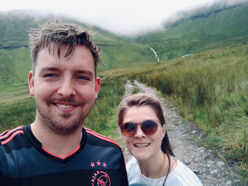 Dat was het dan ook. We hebben een korte wandeling van zo'n anderhalf uur gemaakt langs de voet van de enorme berg. Zoals al zo vaak hier in Ierland was ook hier de rust overweldigend. Paadjes over hoge, uitgestrekte vlakten en slingerende paadjes omhoog langs wilde riviertakken. De reusachtige Ben Bulben immer op de achtergrond. De tijd was onze grootste vijand en helaas konden we de berg niet beklimmen. Ach, we zouden later ook nog naar de Wicklow Mountains ten zuiden van Dublin gaan. Misschien voor in de toekomst, mochten we ooit terugkeren: dan zou Ben Bulben altijd nog getrotseerd kunnen worden.