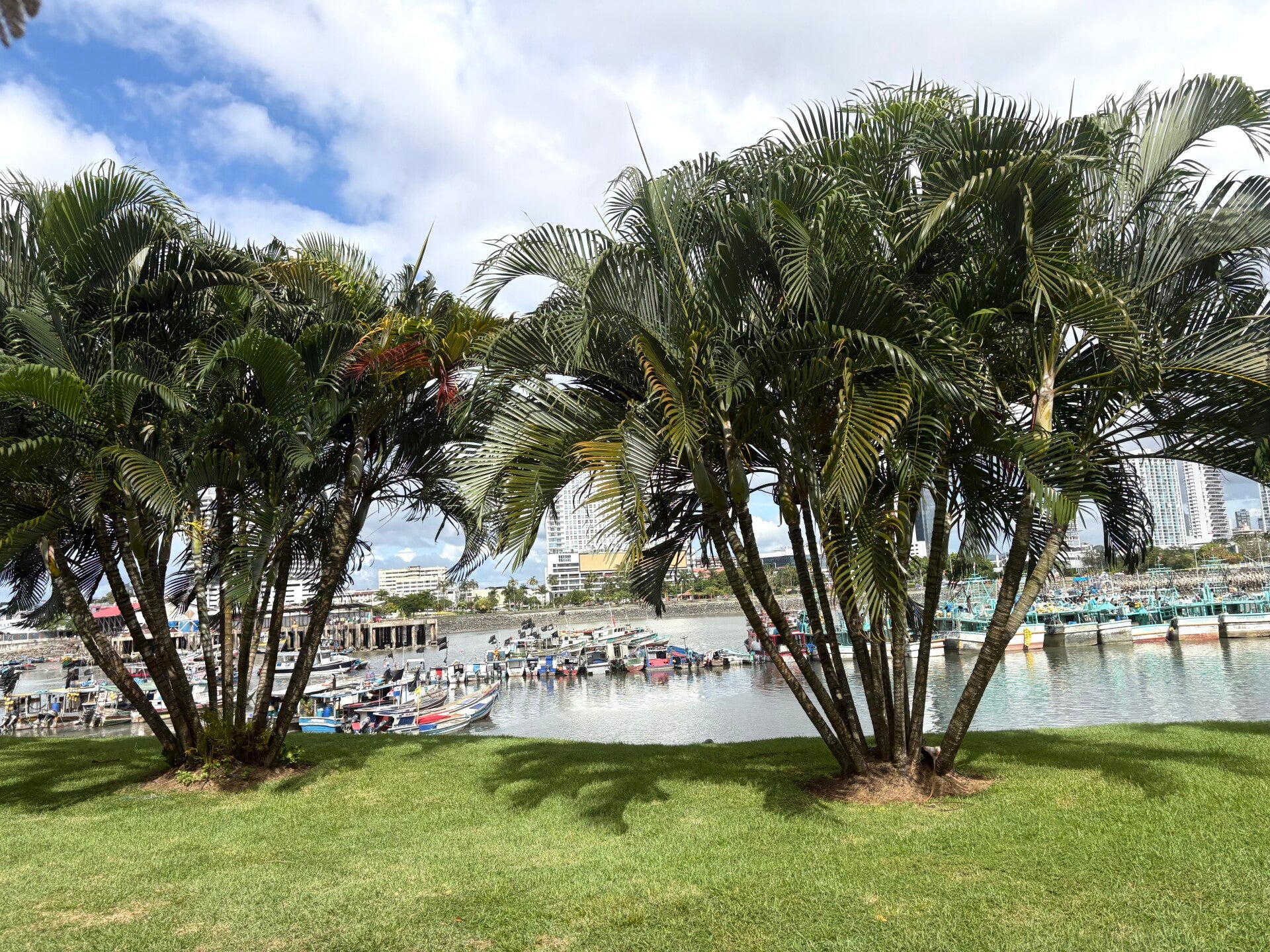 Na de Cinta Costera denderen we met 3,5 km/u door richting de Amador Causeway. Ook weer een héél mooi stukje Panama-Stad hoor, die Amador Causeway. Amador Causeway is een dijk van een kilometertje of zes die het vasteland met vier eilanden voor de kust verbindt en de prachtige Baai van Panama in tweeën splitst. Mooie eilandjes wel, ware het niet dat de Panamezen hier zesentwintig jaar geleden nog niet mochten komen omdat het Amerikaanse leger hier tot 1999 hink-stap-sprong speelde. Gelukkig zijn ze nu weg en kunnen wij als toeristen gewoon met onze fietswagen uit 1869 die dijk af fietsen. Mooie kiekjes levert het wel op. Kijk maar.
