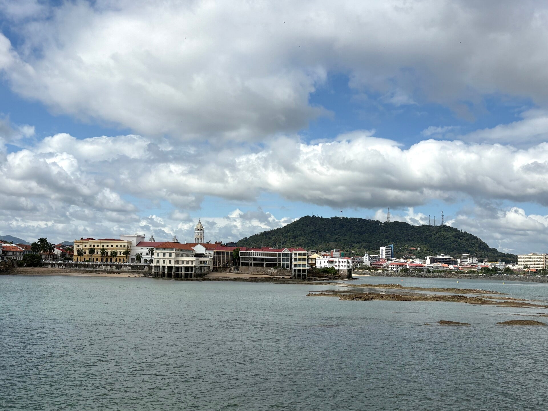 Eerst fietsen we de Cinta Costera verder zuidwaarts en om het oude centrum, dat niet gebouwd is voor veel auto’s, is er een prachtige ringweg over de zee om het centrum heen gebouwd om het oude centrum van verkeer te ontzien. Een prachtig plaatje en het toeval wil dat ze daar ook een fietspad langs hebben gelegd. Een weg van zo’n vier kilometer en door ons stapvoetse tempo kunnen we lang genieten van de mooie uitzichten op de oude stad.