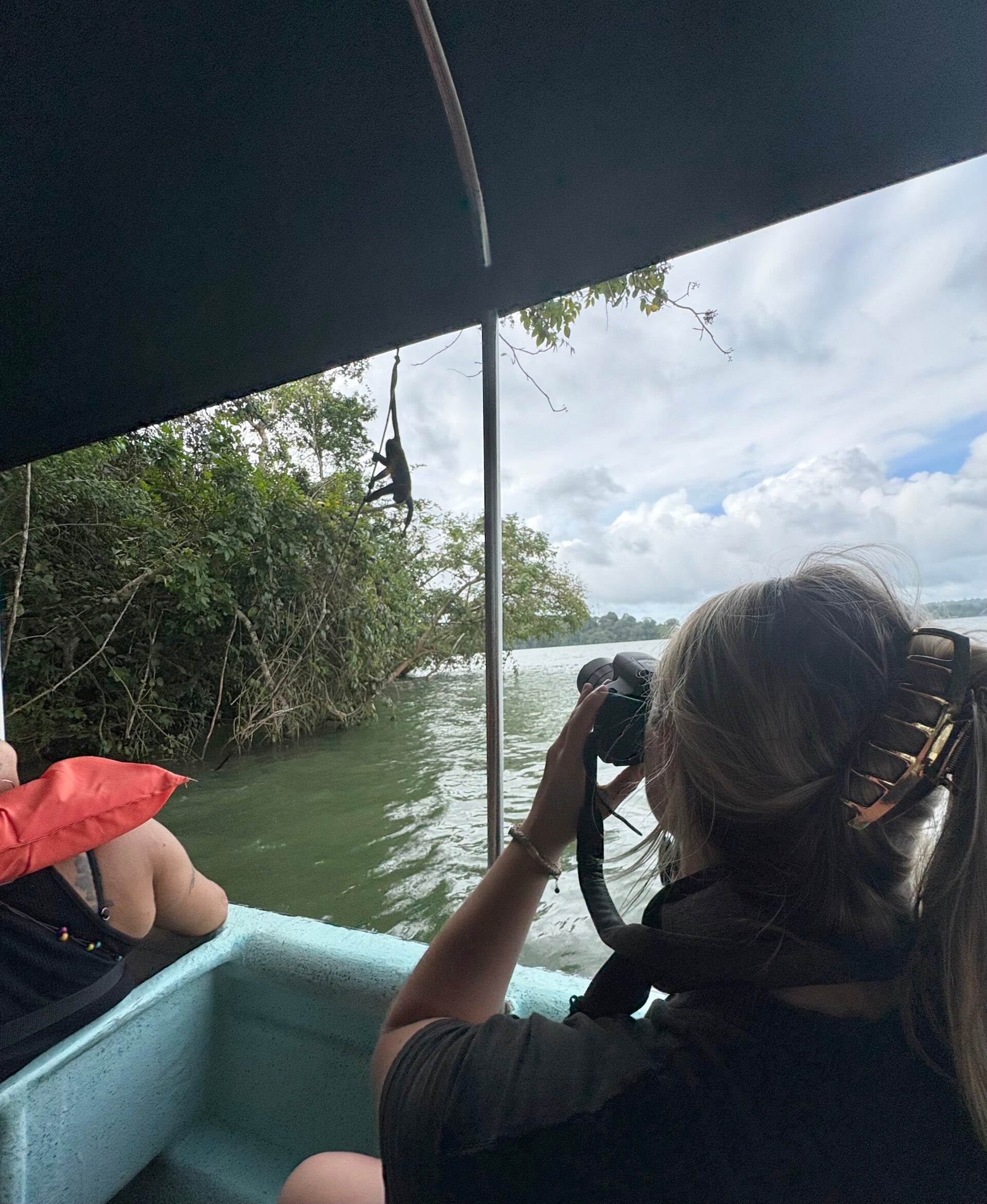 Lang blijven we niet, want de wekker gaat vroeg. Om half zes nemen we de taxi naar het ophaalpunt voor onze tour naar Lago de Gatún, oftewel Gatún Lake, het enorme kunstmatige stuwmeer dat aan de Atlantische/Caribische zijde van het Panamakanaal is gevormd. En de tour stelt niet teleur: het is alsof de wilde dieren zich vandaag als burgers van een fastfoodketen aan ons presenteren. Ik beloof je: de foto’s die je vanaf nu gaat zien hebben we helemaal zelf gemaakt. Geen internet, geen Google, geen AI.