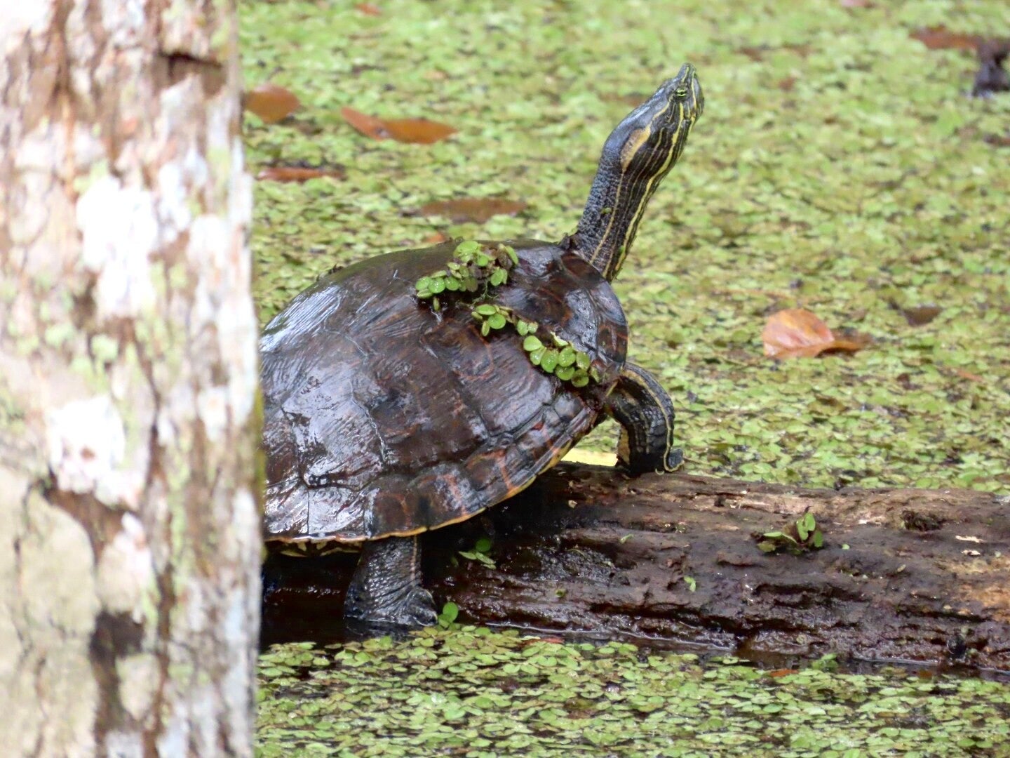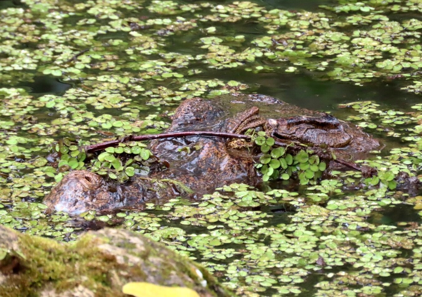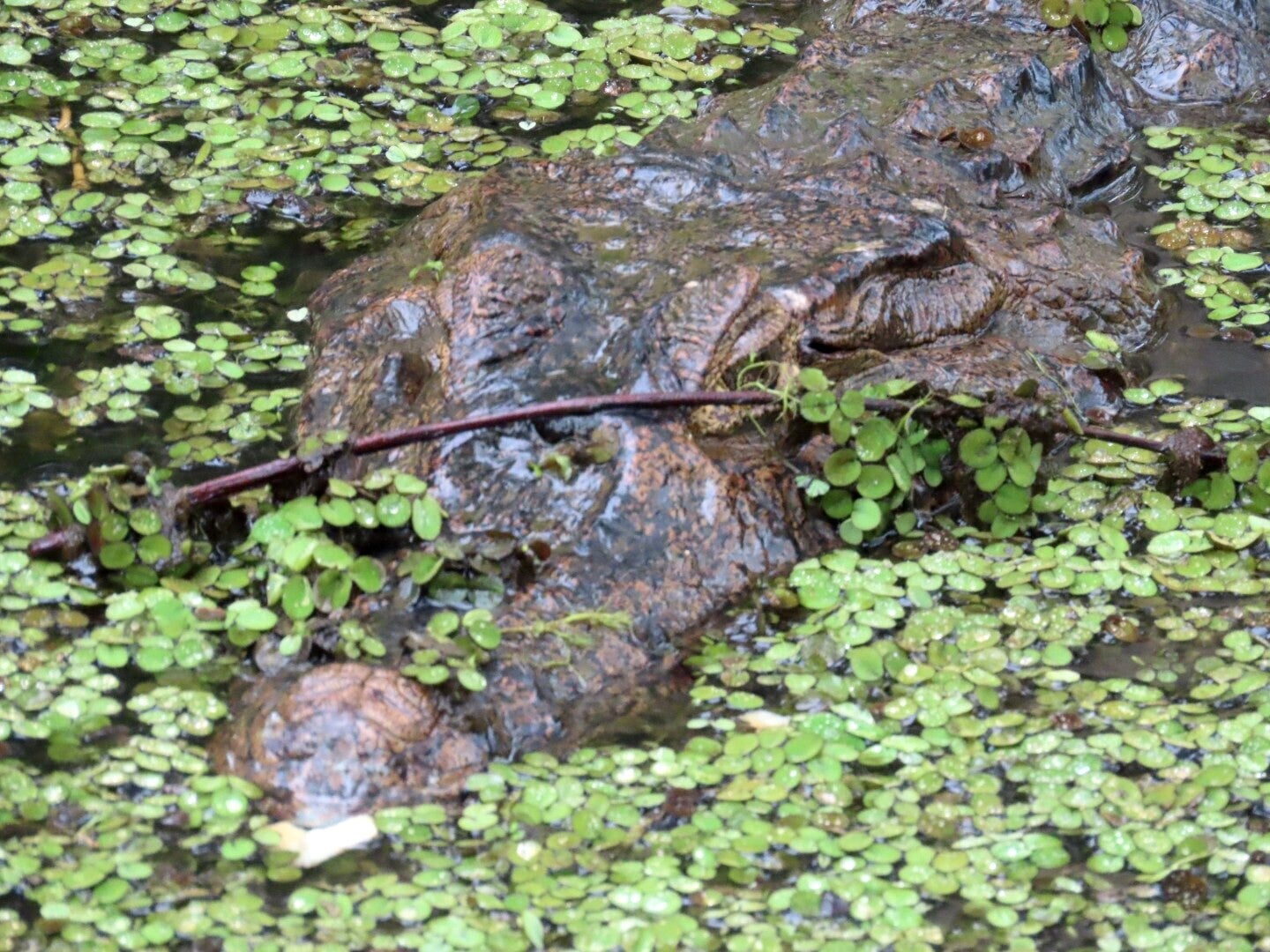 Dan denk je dat je er bent, maar dan moet je dat Gatún Lake nog op. Voordat we er zijn, springen we weer uit de bus. Krokodillen! Jawel, gewoon aan de oever van het meer doemen daar opeens drie krokodillen op. En dat niet alleen, er zitten ook nog potverdorie een stuk of zes schildpadden bij! Van gekkigheid weet je gewoon niet waar je moet kijken.
