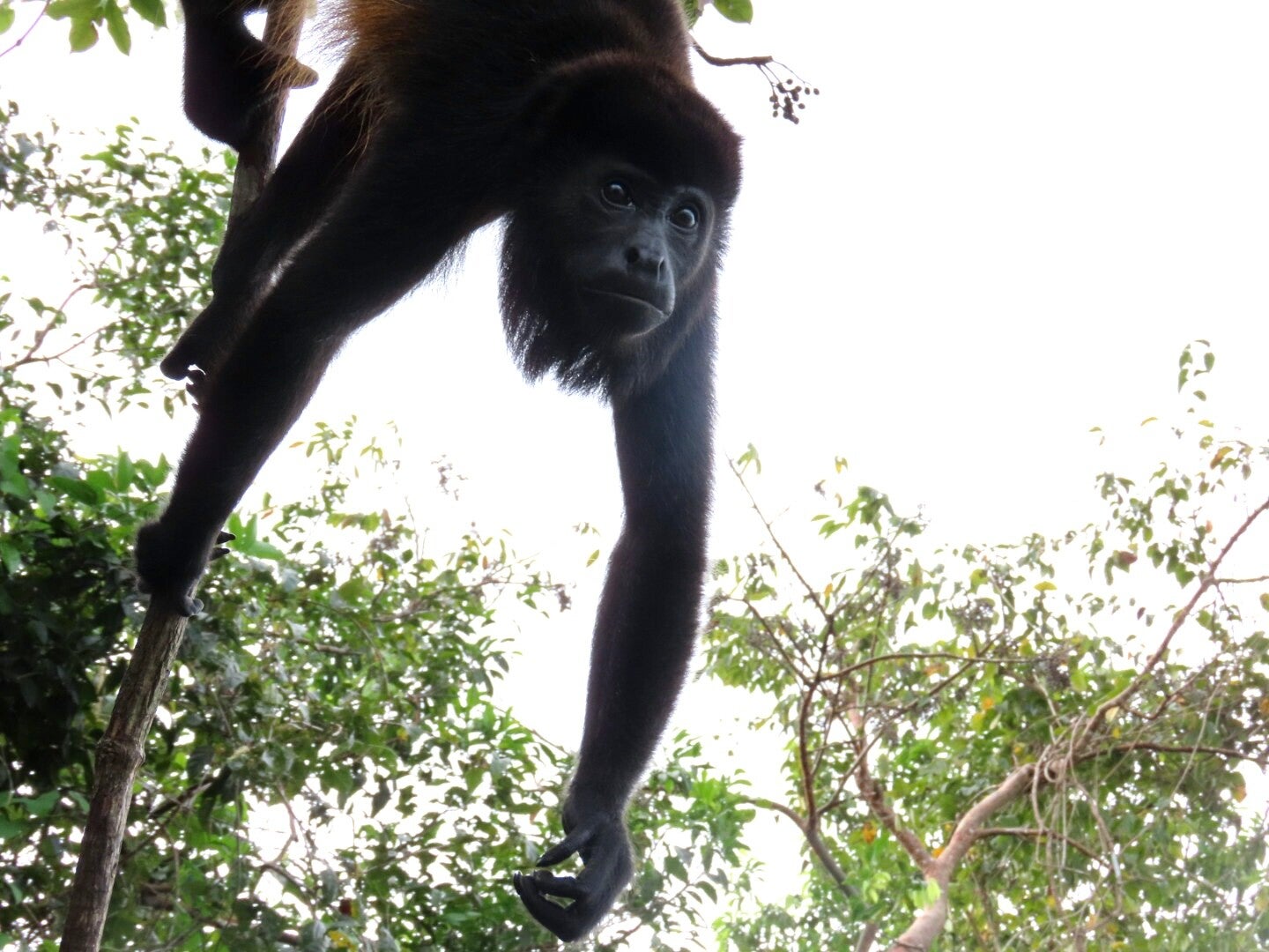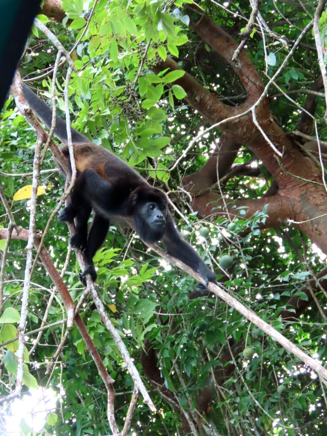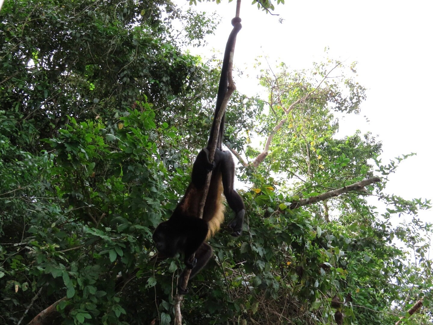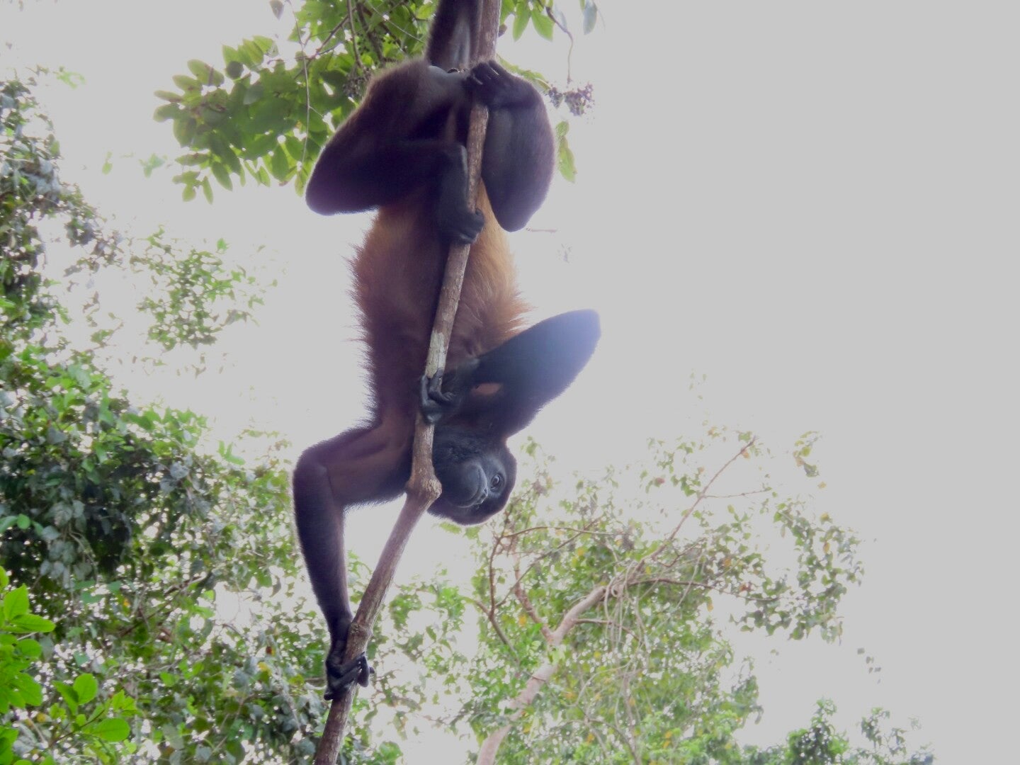 En daarna een brulaap. En niet zomaar een brulaap, maar ook eentje die ons heel interessant vindt en hangend aan een liaan als een waar fotomodel bij onze boot komt poseren. Zó bijzonder, keer op keer op keer op keer.