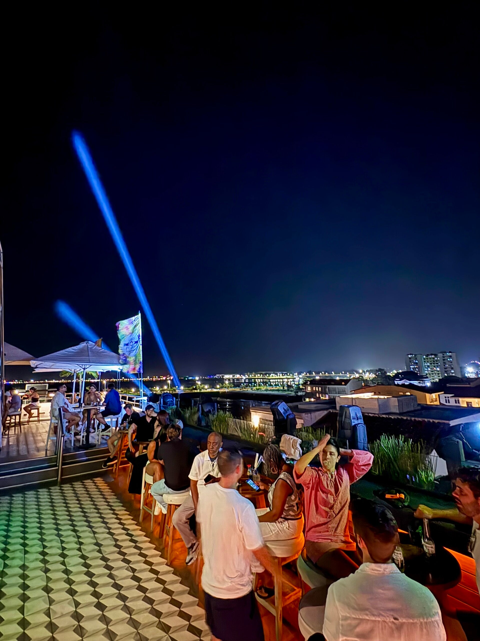 De nieuwe stad is eigenlijk een bolwerk van grote bedrijfsketens, kantoren, haastigheid, bedrijvigheid en spierballentaal in de vorm van indrukwekkende hoogbouw. Lachen om met ons rugzakje doorheen te bonjouren en naar die prachtige wolkenkrabbers te apegapen, maar na één keer hebben we het ook wel gezien. In een absolute unit van een betonreus, vinden we een schaars buitenbarretje. Er moet natuurlijk wel geproost worden op het eindelijk vinden van een oplader, dus besluiten we onder het genot van vier kaartjes Black Stories ons de rest van de middag maar lekker te bezatten.