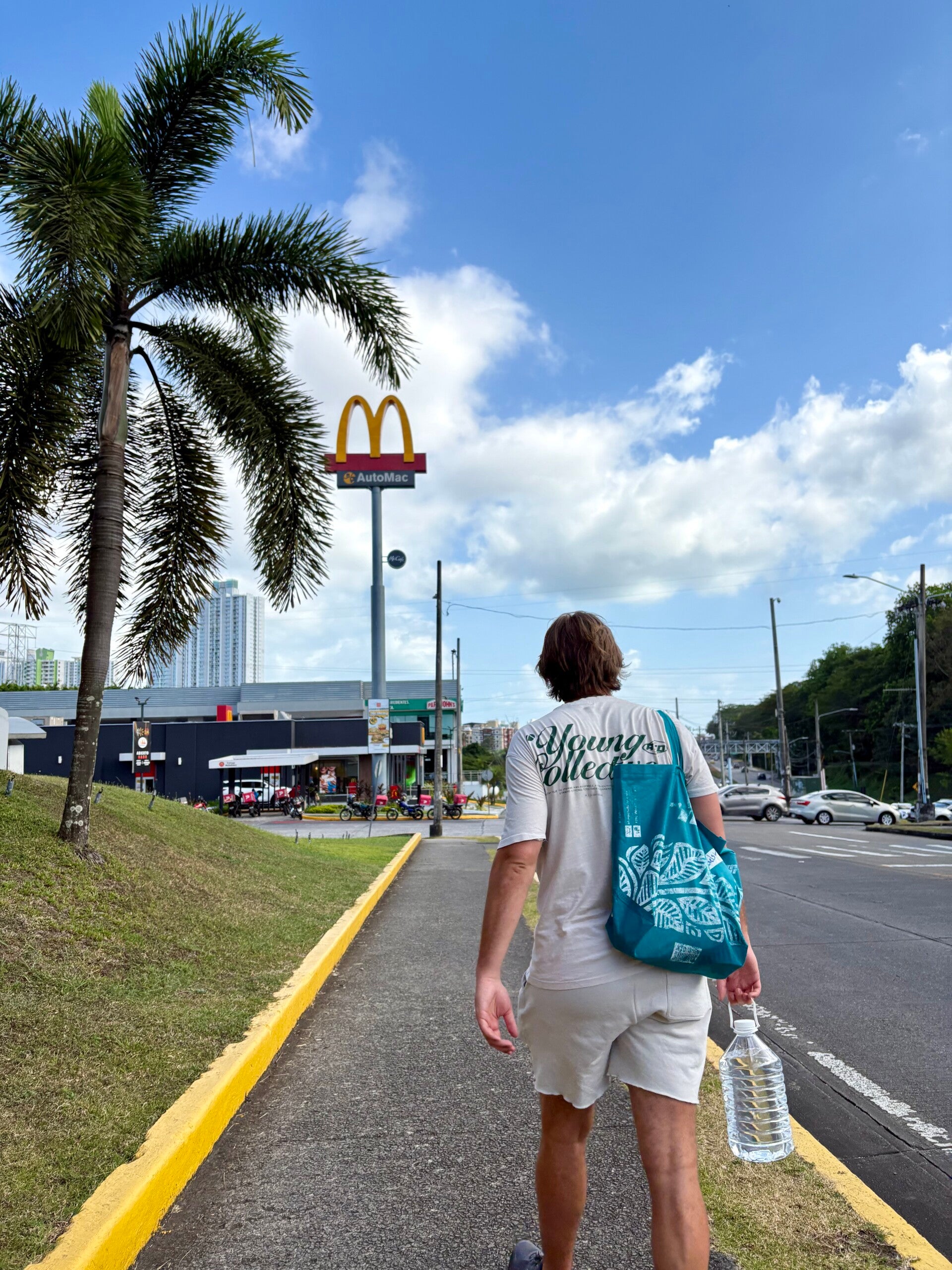Gelukkig gaat dat ’s avonds uit het hoofd, want we komen weer bij het leukste fietspad van het land: de Cinta Costera! Maar… het valt een heel klein beetje tegen. Tegen? Hoe kan dat toch? We waren toch juist zo lyrisch over de Cinta Costera? Jawel, jawel, maar we waren er de vorige keer met kerst en nu alle kerstversiering en -verlichting weg is, is het ietsjes minder mooi dan dat het hier normaal is. Nog steeds blijft het een van onze persoonlijke favorieten, maar toch. Dat de chorizoworst die ik er eet smaakt alsof hij net uit de koelkast gehaald wordt, heeft daar niks mee te maken – de arrepa’s waar we ons aan tegoed doen, zijn namelijk voortreffelijk.