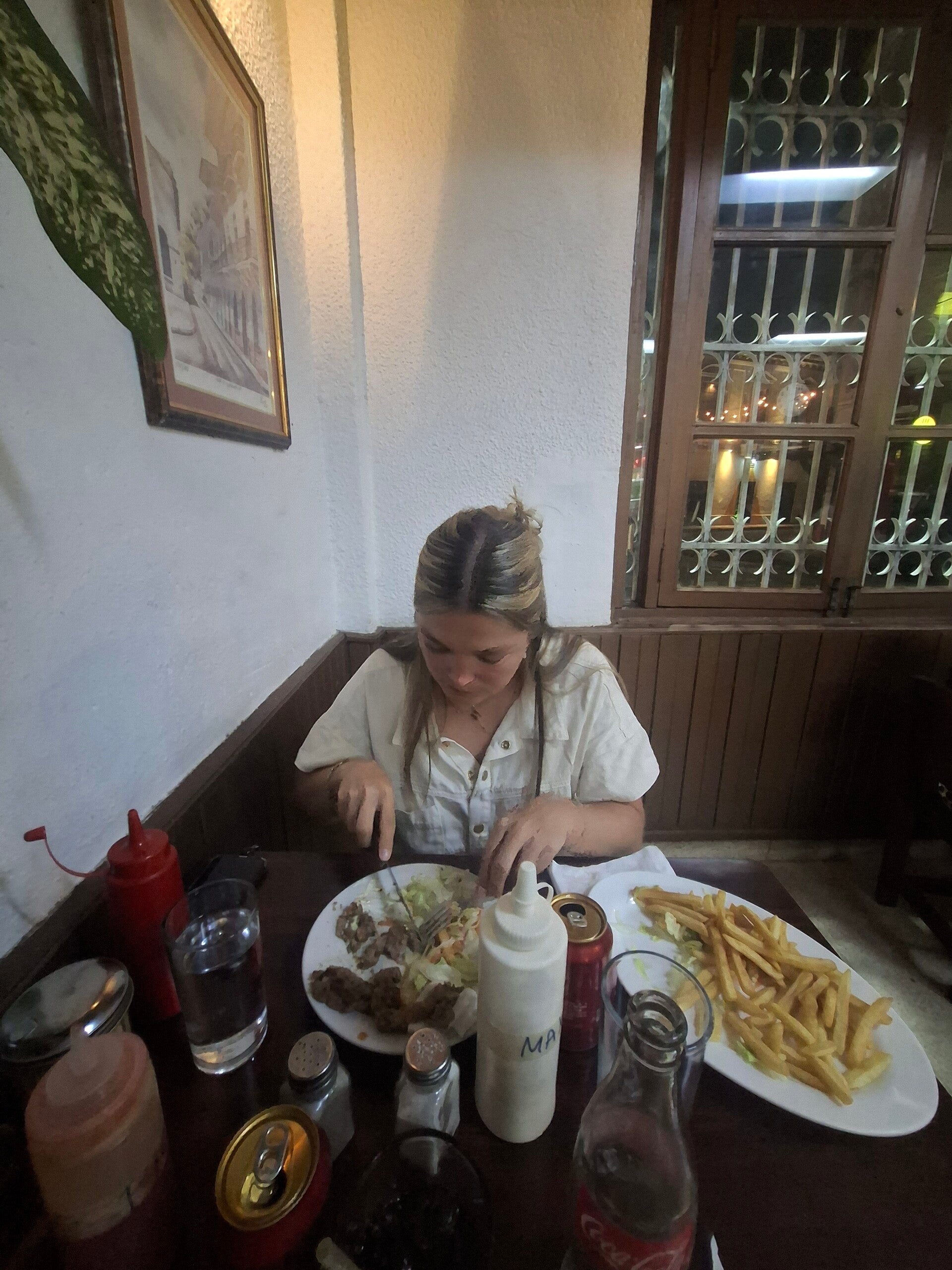 Het café kent veel grote namen die hier door de deuren zijn gestapt. Misschien zat Daniel Craig die James Bond speelde wel op mijn plek. Of Juan Pujol Garcia, een dubbelagent die een cruciale rol tijdens D-Day speelde en hier dagelijks kwam toen hij in Panama woonde. En bij Geertje. Misschien zat Argentijnse legende Evita Perón wel in de hoek waar zij nu zit. Of was het Che Guevara, sleutelfiguur van de Cubaanse revolutie? In ieder geval heeft iemand van de cast van Prison Break hier wél gezeten, want die zaten er per slot van rekening allemaal.