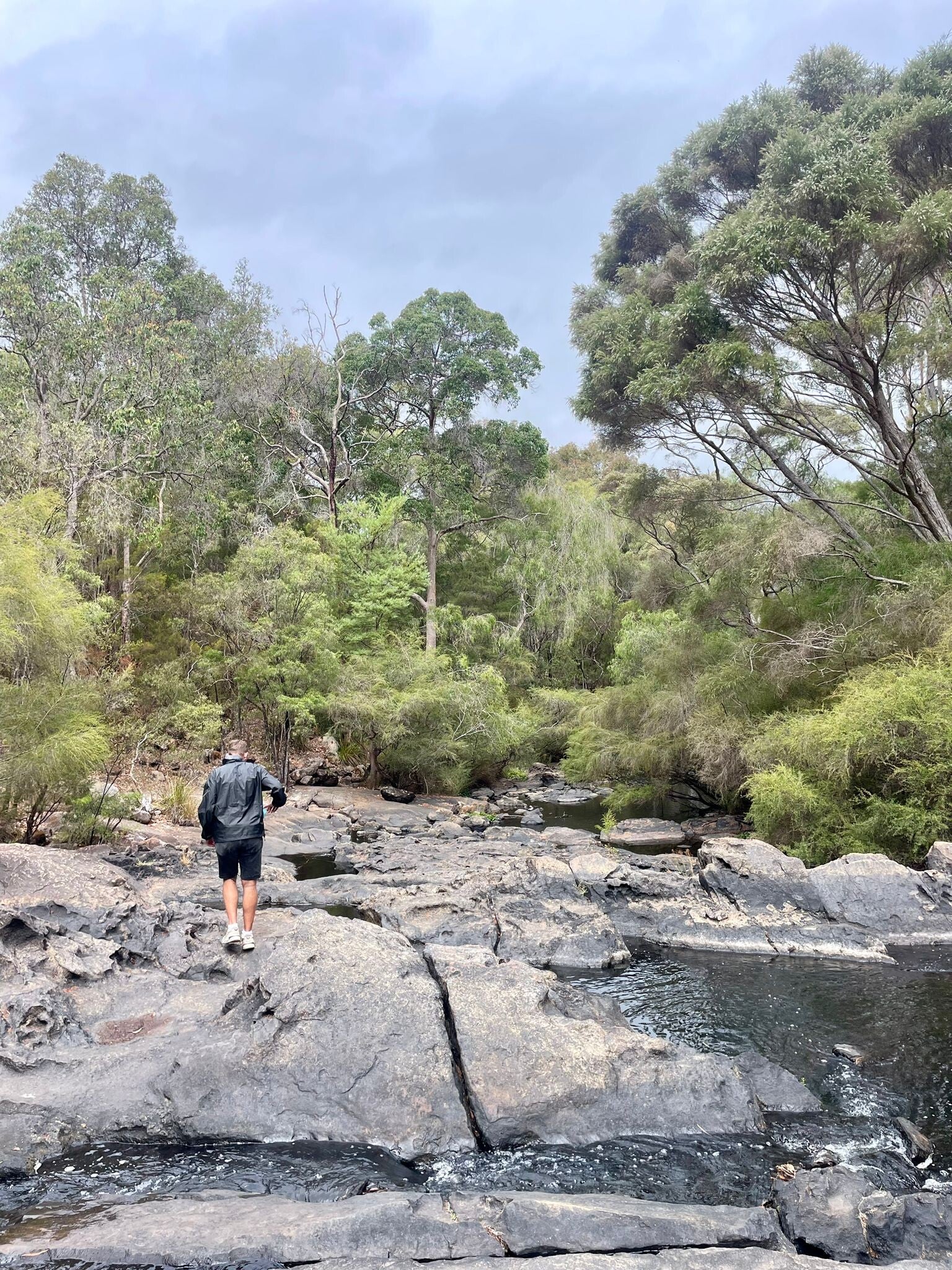 De Diamond Tree is een prachtige, enorme boom in een even zo mooi, rustig en sereen bos. In een vorig leven werd de Diamond Tree als fire tree werd gebruikt. Toen drones, telefoons en dergelijke nog geen ding waren, moest men op een andere manier de bosbranden in beeld krijgen. Zoals je waarschijnlijk wel weet, woedt er in Australië al sinds jaar en dag een strijd tegen bosbranden en de regio Manjimup kent drie fire trees; bomen waar een krakkemikkige wenteltrap omheen is gebouwd, omdat de lengte van de bomen de rest van het bos overstijgen, zodat je aan de top een uitzicht hebt over de omgeving en zo een bosbrand kan lokaliseren. De Diamond Tree is echter niet meer te beklimmen, omdat de boom van binnen is gaan rotten, dus moeten we ons geluk testen bij een van de andere bomen. Wellicht dat we dat op een later moment gaan proberen, maar niet vandaag: we gaan de dag lekker afsluiten bij Fonty’s Pool, een koud biertje uit Binky’s koelkastje en een lekkere barbecue verzorgd door ondergetekende (ook ik moet een keer voor de maaltijd zorgen en vandaag is de eerste keer dat ik eraan moet geloven).
