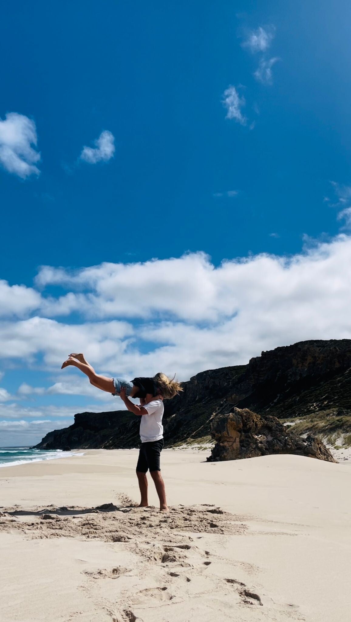 De muggen zijn van het strand verdwenen en de zeikvisser is weg om te kijken of er achter de duinen nog wat zitten om olifanten van te maken. Intussen proberen wij onze dag met iets meer positiviteit te vullen dan onze humeurige leeftijdsgenoot, dus maken we een strandwandelingetje, schieten nog een paar leuke foto’s en maken nog een filmpje (Niels en Geertje (@reisbuddys) • Instagram-foto's en -video's), waar een foto uitrolt. Creativiteit is ons niet vreemd, hé? Het helpt ook zeker mee dat Salmon Beach zo’n bizar mooi pareltje van een strand is, waar de doorsnee toerist nog geen kaas van gegeten heeft.