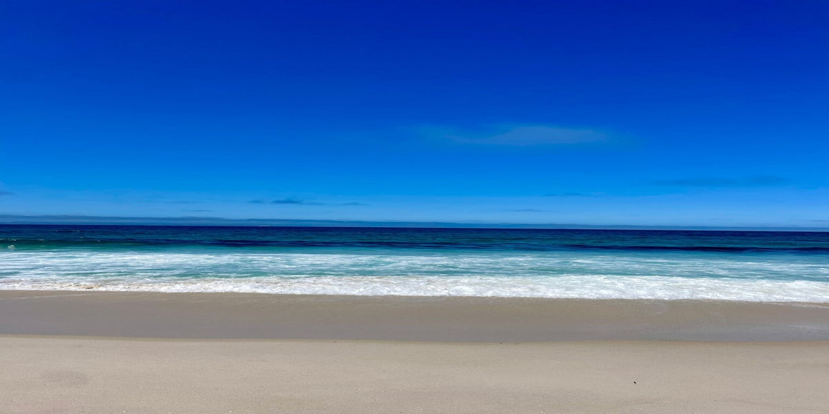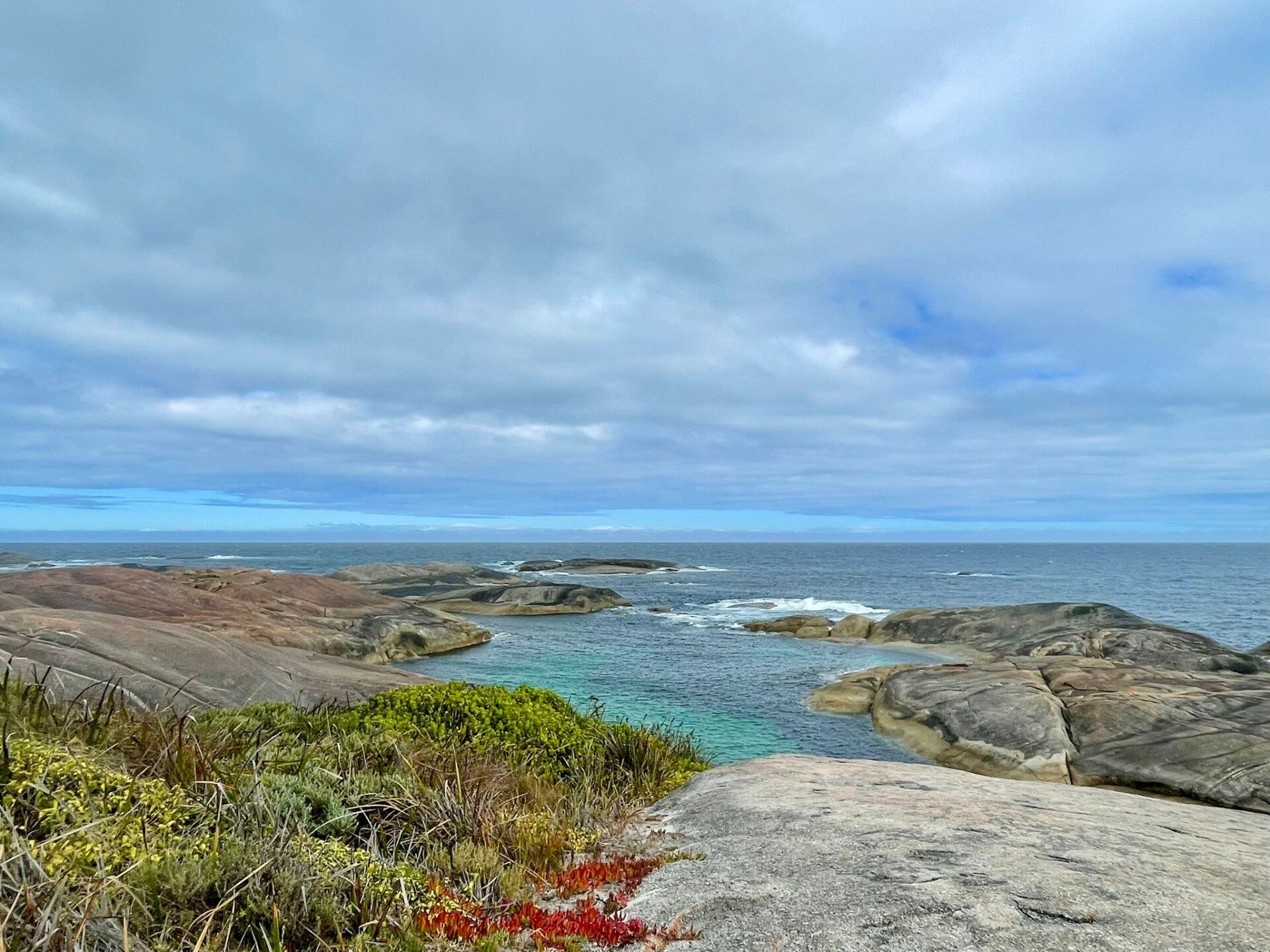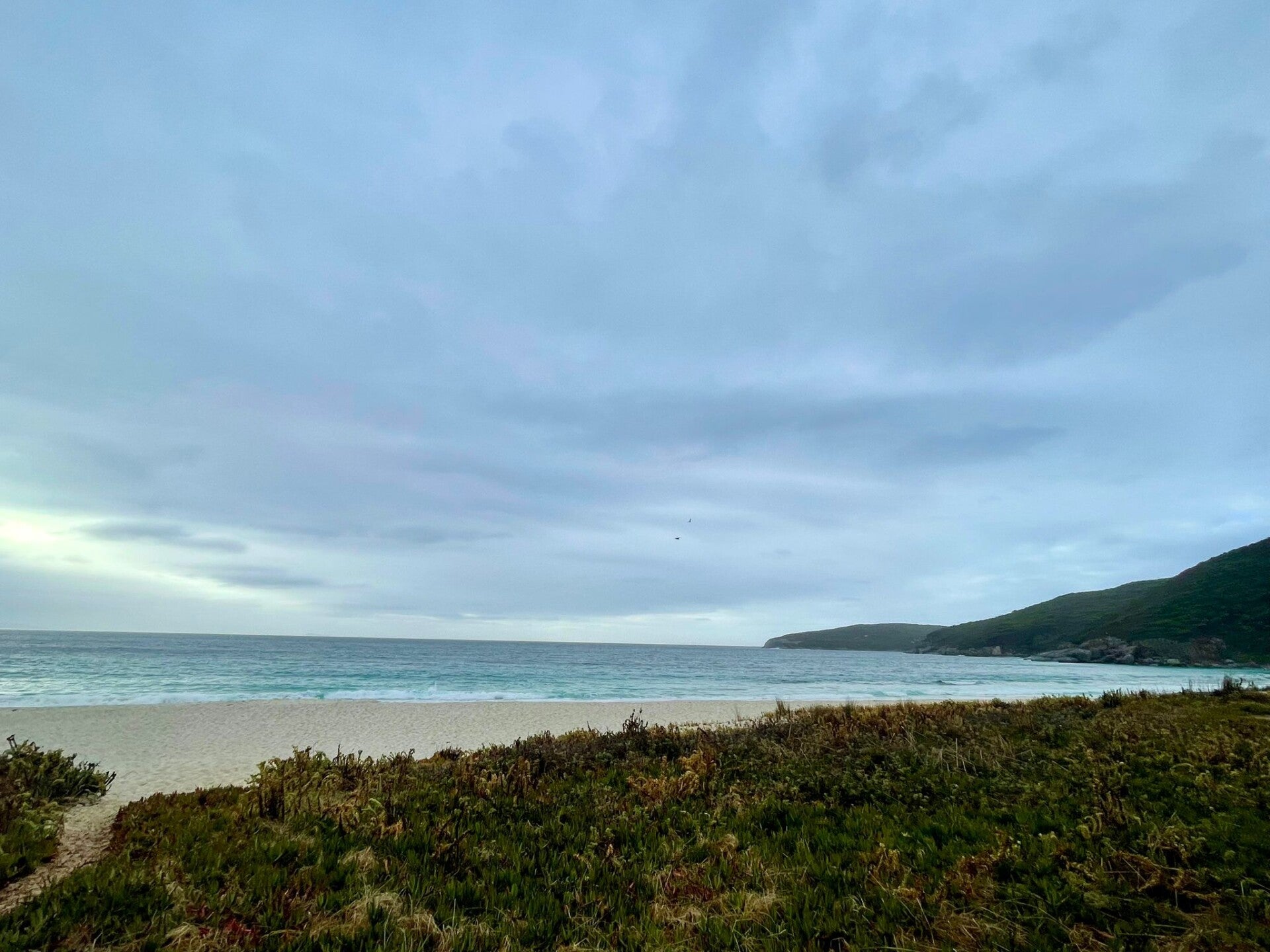 Maar niet voordat we een kijkje nemen bij Ocean Beach Lookout, iets voorbij onze camping! Ocean Beach Lookout is een steenworp van onze camping verwijderd en biedt een uitzicht over het strand en de Grote Australische Bocht. Het strand is zo lang als honderd omgevallen giraffen, maar verder is het uitzicht niet zo heel denderend, zeker niet als je dezelfde dag al bij de Elephant Rocks en de Greens Pool bent geweest. Ach, weet je; het kost niets, dus we klagen ook maar niet en we genieten toch maar eventjes van het uitzicht. Wel een interessant feitje: op Google Maps wordt het hele strand als deel van de zee gemarkeerd. Dat betekent dat het nu eb is, maar wanneer het tij hoger staat, ligt hier alles onder water!