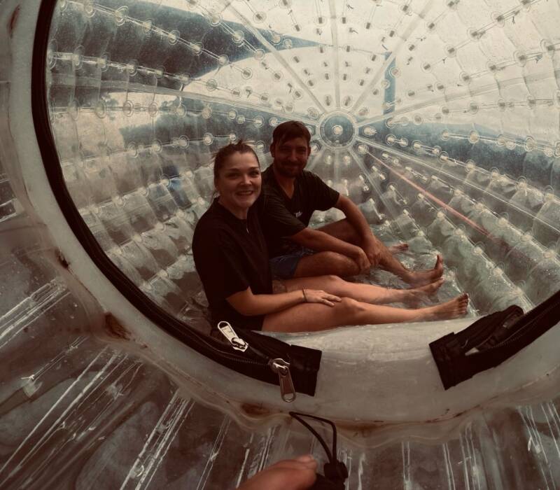 2. Levend knikkeren bij Denmark Thrills Adventure. "Je bent nooit te oud om kind te zijn", predikt de 54-jarige Matt als hij lachend bekend zichzelf nog steeds wel eens in zo'n bubbelbal van de heuvel af te smijten. En hij heeft gelijk: de kinderlijke creativiteit van Matt en Emilia heeft een geweldige activiteit opgeleverd. Geen interessante cultuur of geweldige natuur? Nou, zelfs dat krijg je erbij: prachtige uitzichten, een heerlijke Australische Milo en een hoop achtergrondinformatie van de twee wandelende encyclopedieën die tevens het kind in je naar boven halen door je van die heuvel af te smijten.