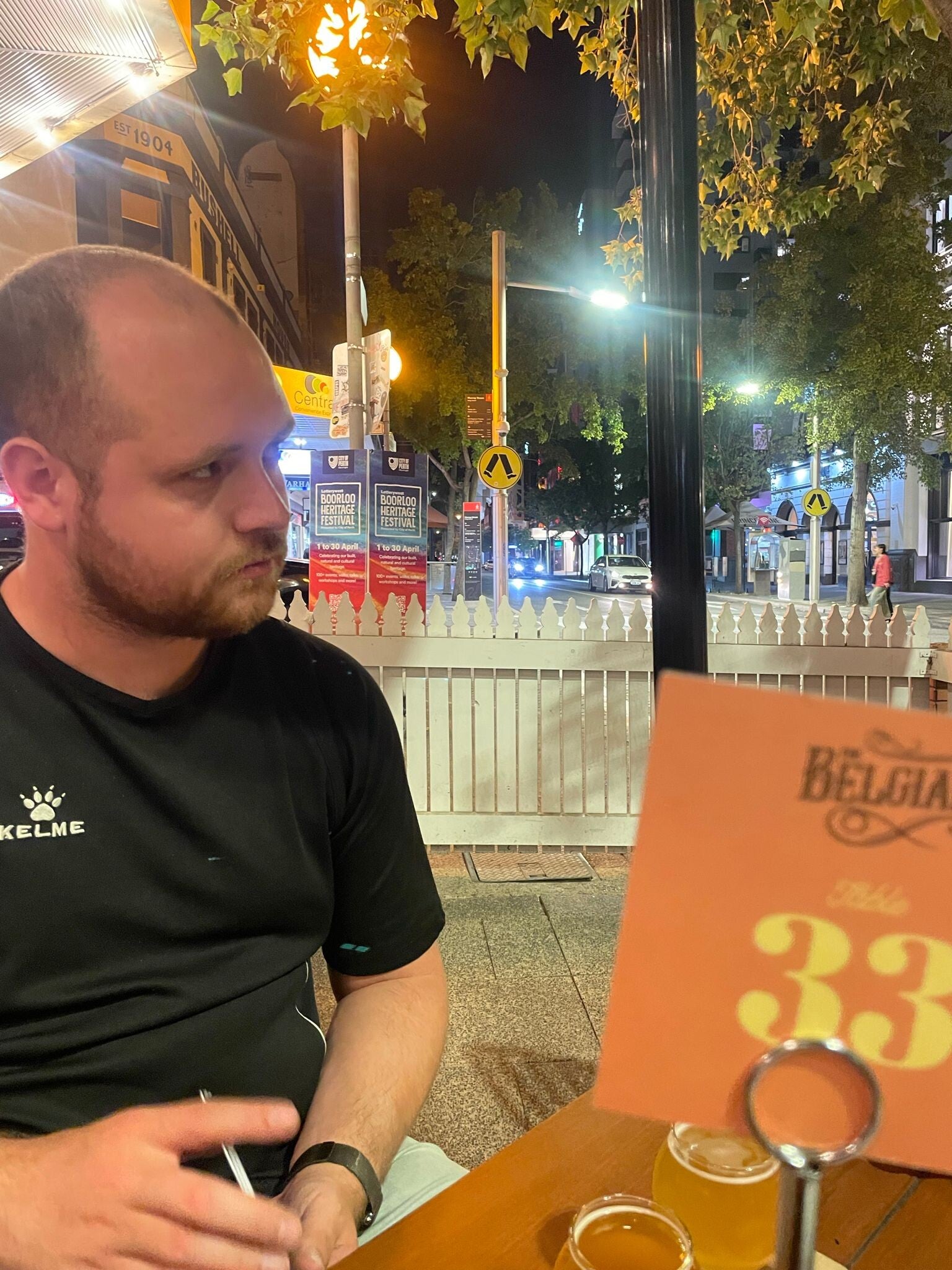 Waar kunnen we in dat centrum dan beter zitten dan bij het Belgische biercafé? Ik weet het, het einde nadert en om dan voor iets te kiezen dat op cultureel vlak zo dichtbij huis lijkt, is misschien niet het eerste wat in je opkomt, maar de afgelopen tijd hebben we ontzettend genoten van de Australische speciaalbieren. Geef ons eens ongelijk: als enorm speciaalbierliefhebber heb ik in vijf en een halve maand in Azië al genoeg op mijn tong moeten bijten aangezien speciaalbier daar een niet bestaand fenomeen is en we (ja, ook Geertje) maar wat blij zijn dat we hier ons hart op kunnen halen als het om speciaalbieren gaat. Als we dan ook nog lucht krijgen van een speciaalbiercafé (tip van onze Greg, weten jullie nog, die ene man die een potentiële koper was?) waar klassiekers als Tripel Karmeliet, Leffe Donker en Brugse Zot op de menukaart staan, dan is er geen masterdiploma biomedische wetenschappen voor nodig om de inschatting te maken dat wij vanavond aanschuiven aan een tafeltje van het Belgian Beer Cafe.