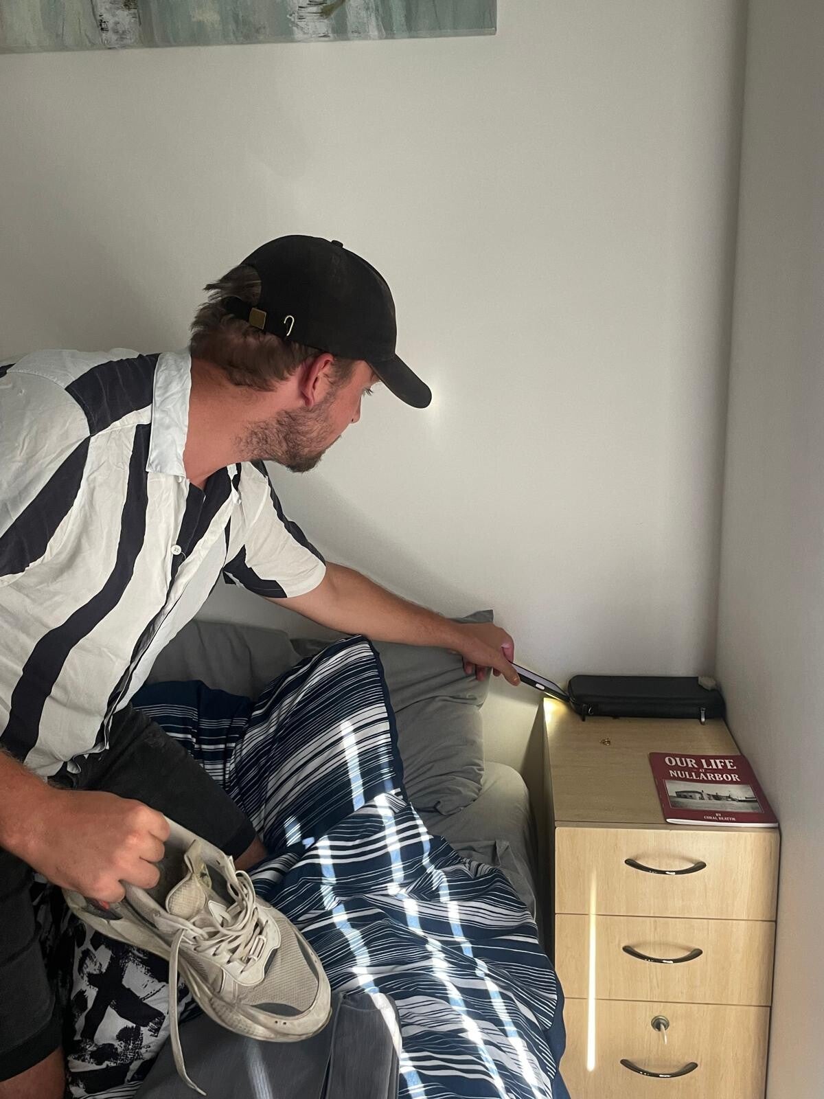 In het jonge koppel Wout en Emma zien we veel gelijkenissen met ons. Net vier dagen in Australië en klaar om een goede, betrouwbare campervan te kopen waar ze vijf maanden mee door het land kunnen banjeren. Het klikt goed en Wout en Emma zijn positief over Binky, maar ergens voelt het niet helemaal fair om Binky zoals hij nu is aan ze te verkopen, maar de waarheid is wel dat de wanhoop met de dag toeneemt. We gunnen Wout en Emma een goede auto, maar we gunnen onszelf dat vliegticket huiswaarts nét ietsje meer. En weet je: dat de deur niet opengaat, is maar kinderslot, toch? En die lekkages… in Australië regent het bijna nooit hé? En die motortemperatuur? Als dat gefixt wordt, is Binky weer als nieuw! Wout en Emma rijden een te kort rondje om de motortemperatuur tot de piek te zien gaan en ze zijn positief. Er is dus weer hoop. Wout ligt nog onder de campervan en ziet daar ook niets geks. Er is dus hoop, er zijn weer kopers en er zijn geïnteresseerden. Wout en Emma klonken positief.