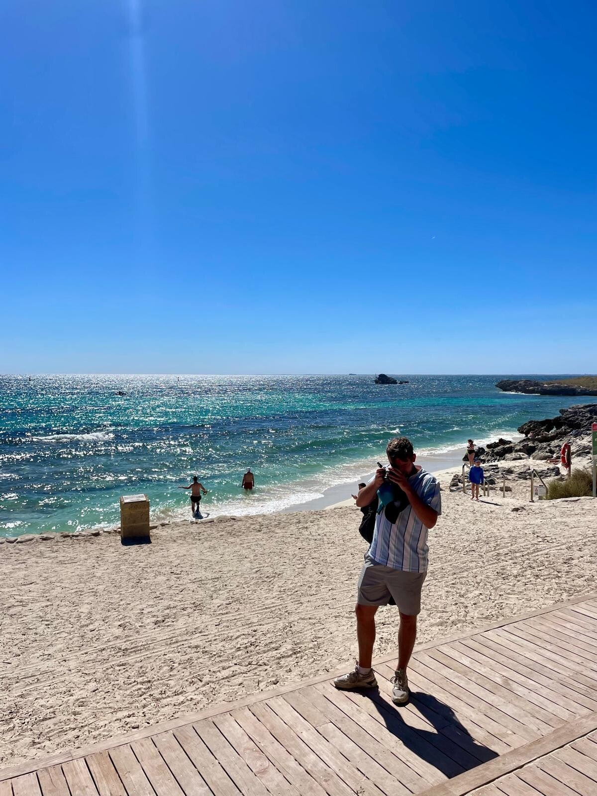 Onze laatste stop van vandaag is Porpoise Bay, een strand aan de zuidkust van het eiland. We hebben niet voor niets die snorkelset meegenomen, want Sjoerd en ik zijn van plan om die bij dat laatste strandje te gaan gebruiken. Ondanks dat het wat tegenviel in Busselton tijdens het snorkelen, gaat Sjoerdje toch weer aan het dobberen. Porpoise Bay, waar we de tweede quokka tegen het lijf lopen, blijkt een leuke snorkelplek te zijn. Er is geen koraal te vinden, dus ik verwachtte eigenlijk niks, maar zodra we wat verder het water in zijn, blijkt dat hier verrassend veel vissen zich aan het zeewier tegoed doen. Onverwachts? Ja. Maakt dat uit? Zeker niet!