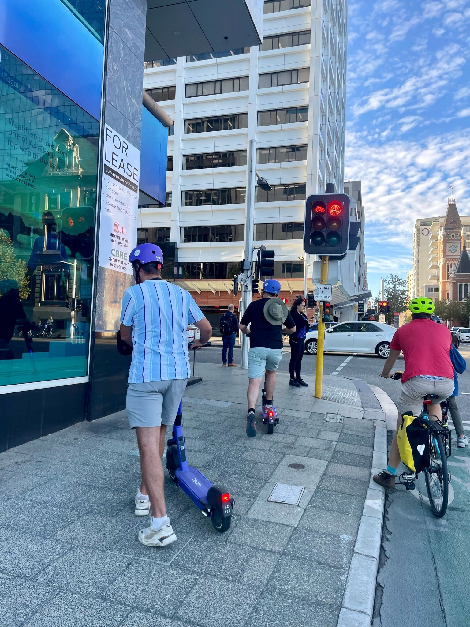 Goed, voordat het allemaal te slijmerig of te zoetsappig wordt, ga ik maar gauw terug naar de orde van de dag en die orde van de dag is Perth, de hoofdstad van het West-Australische Perth. Op die op één na laatste dag met Sjoerd hebben we dus Heirisson Island met onze gratie bekleed en zijn we ’s avonds met de step dat bruisende financiële district van Perth ingegaan en dat kenmerkende ‘dorpsgevoel’ van Perth (ja, een stad ongeveer twee keer zo groot als Amsterdam voelt soms aan als een groot dorp) maakt hier plaats voor een echt stadsgevoel. Alles in dat financiële district van Perth ademt de air van een stad. En och, wat is het na zo’n lange tijd in de wildernis, stiekem toch heerlijk om in een bruisend centrum vol betonreuzen rond te dwalen.
