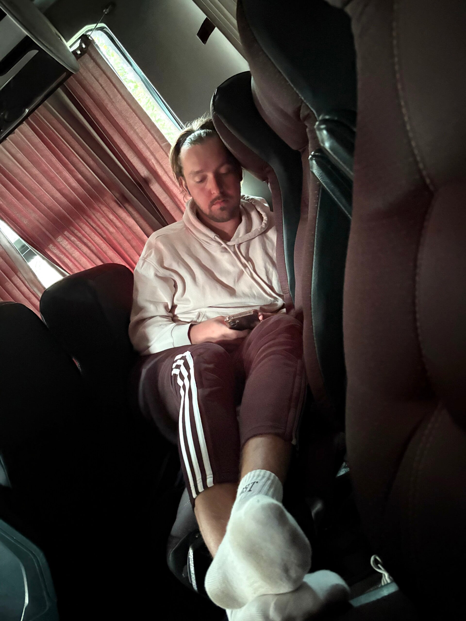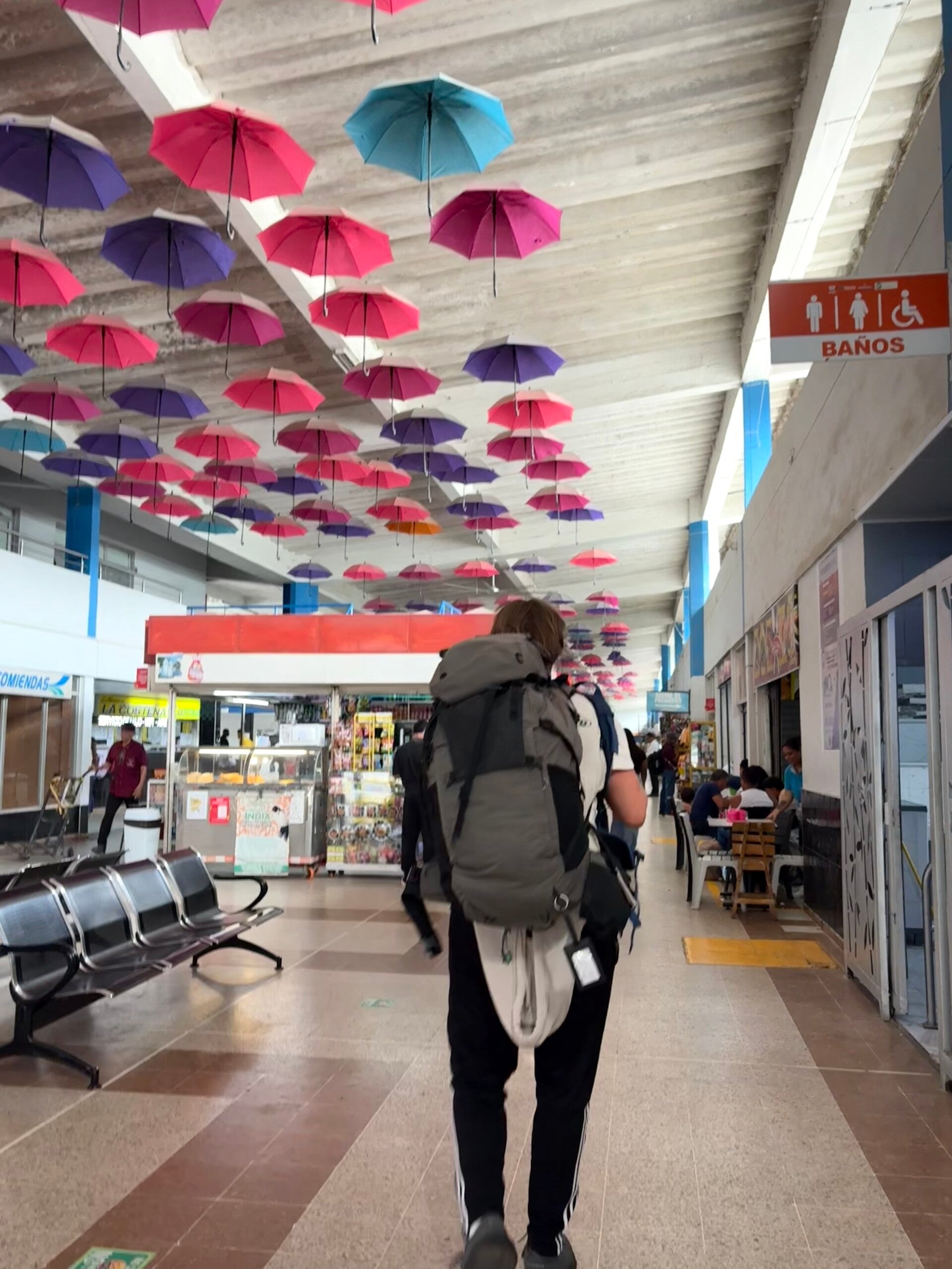 Gelukkig kunnen we die tweeënhalf uur overbruggen in een wachtruimte MET AIRCO! Geertje is weer in de zevende hemel. Truitje aan en de airco in en het kind is zo gelukkig als Assepoester met haar glazen muiltje. En als Geertje ergens lang moet zitten, dan slaapt ze. Lieve schoonouders... Heeft ze dit altijd al gehad? Overal, maar dan ook echt overal, valt ze in slaap als we onderweg ergens naar toe zijn. Of het nu de speedboot is tijdens de San Blas-tour, de bus naar Cartagena waar ze bijna op de schouder van de chauffeur of hier in de wachtkamer en later in de bus die overduidelijk geen schokdempers meer heeft (zie de selfies: honderd pogingen om ze scherp te krijgen): Geertje slaapt overal. O-ve-ral.