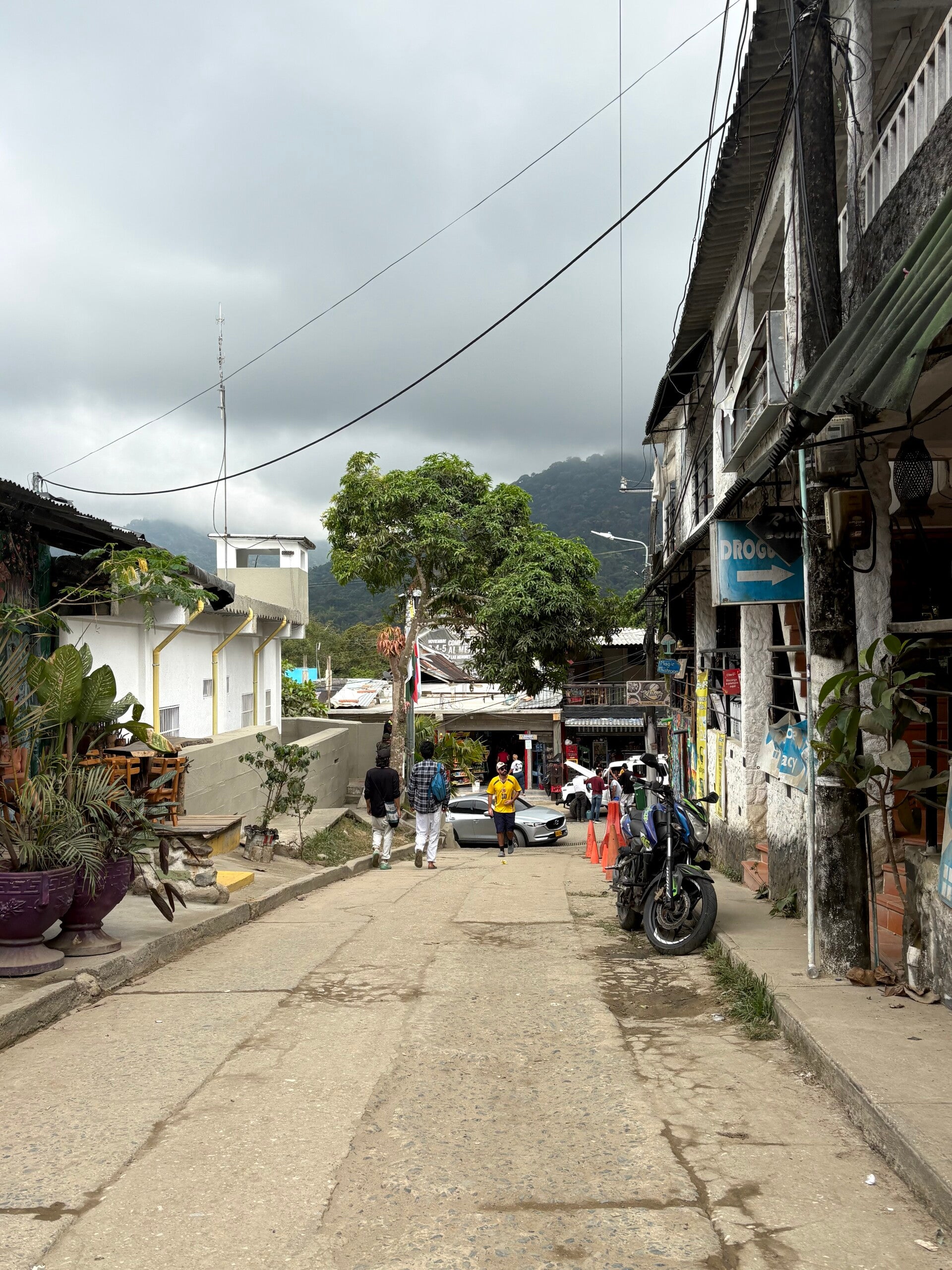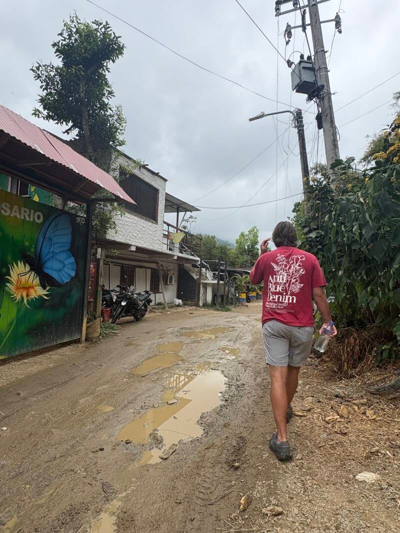 Na een lange nacht waarin we beiden met de onuitgesproken angst voor aardverschuivingen (Akainoie is gebouwd op een wel heel schuine helling) hebben geslapen, aangezien de regen oorverdovend op de golfplaten kletterde en de donder klonk alsof de bliksem in de achtertuin insloeg, worden we wakker en is daar eindelijk het zonnetje doorgebroken. Blijven? Mwa, het kwaad is al lang geschied. Als we naar het dorpje lopen is de weg één groot modderbad. Ik zeg vaak – Geertje is het niet altijd eens – dat backpacks enorm overrated zijn en je 96% gewoon met een degelijke rolkoffer kunt bewerkstelligen tijdens zo’n reis, maar hier in Minca zijn we maar wat blij dat onze bagage volledig draagbaar is.