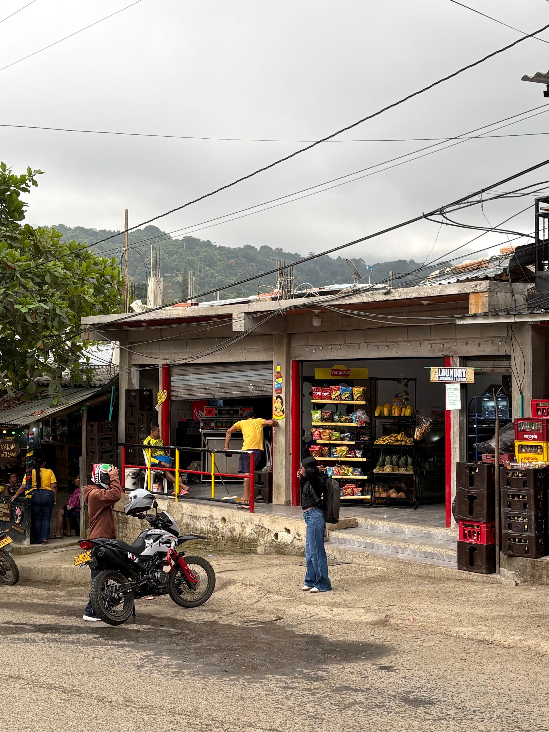 Aanvankelijk dachten we dat de stroomstoring alleen in ons guesthouse aan de gang was, maar de ellende moet nog beginnen. Ik ga wat biertjes halen in het dorp, maar daar ontdek ik dat het complete dorp plat ligt. Het lijkt erop dat die Colombianen dit wel gewend zijn, want er zijn een paar etablissementjes die op een noodaggregaat de boel draaiende houden (met bijbehorende jolige Spaanstalige meezingers op standje gehoorschade, precies zoals we dat hier intussen gewend zijn), maar waar onze timing met bellen vanmiddag top was, is die timing van deze stroomstoring wat minder: vanavond is de laatste avond dat Grace en Danielle (met twee l’en, de Canadese dus en niet de cacaokoningin van vanochtend) in Minca zijn omdat hun vakantie er bijna op zit, maar anno 2026 blijkt dat het leven zonder internet toch behoorlijk lastig is, want digitaal met ze in contact komen, blijkt een utopie vandaag.