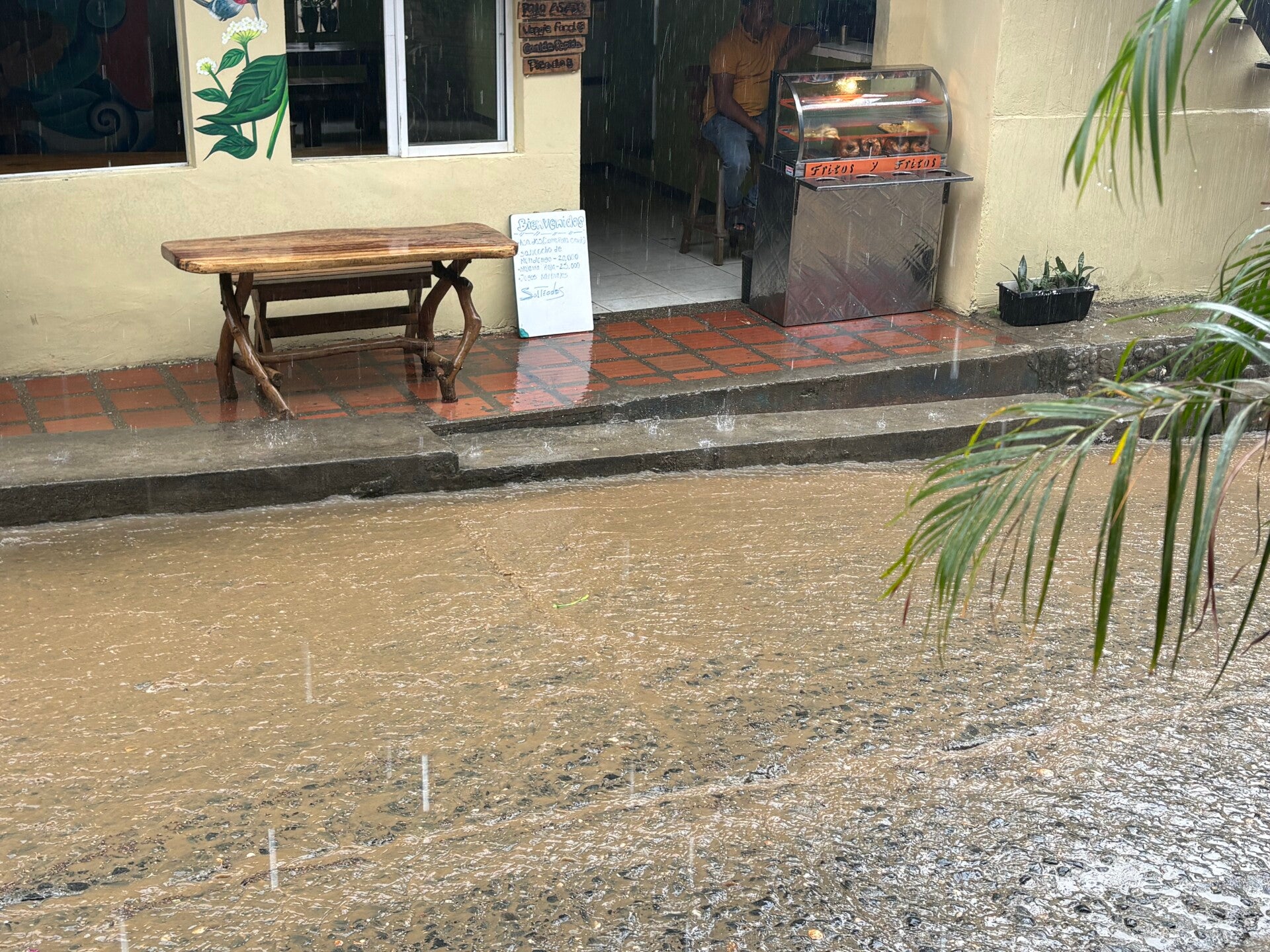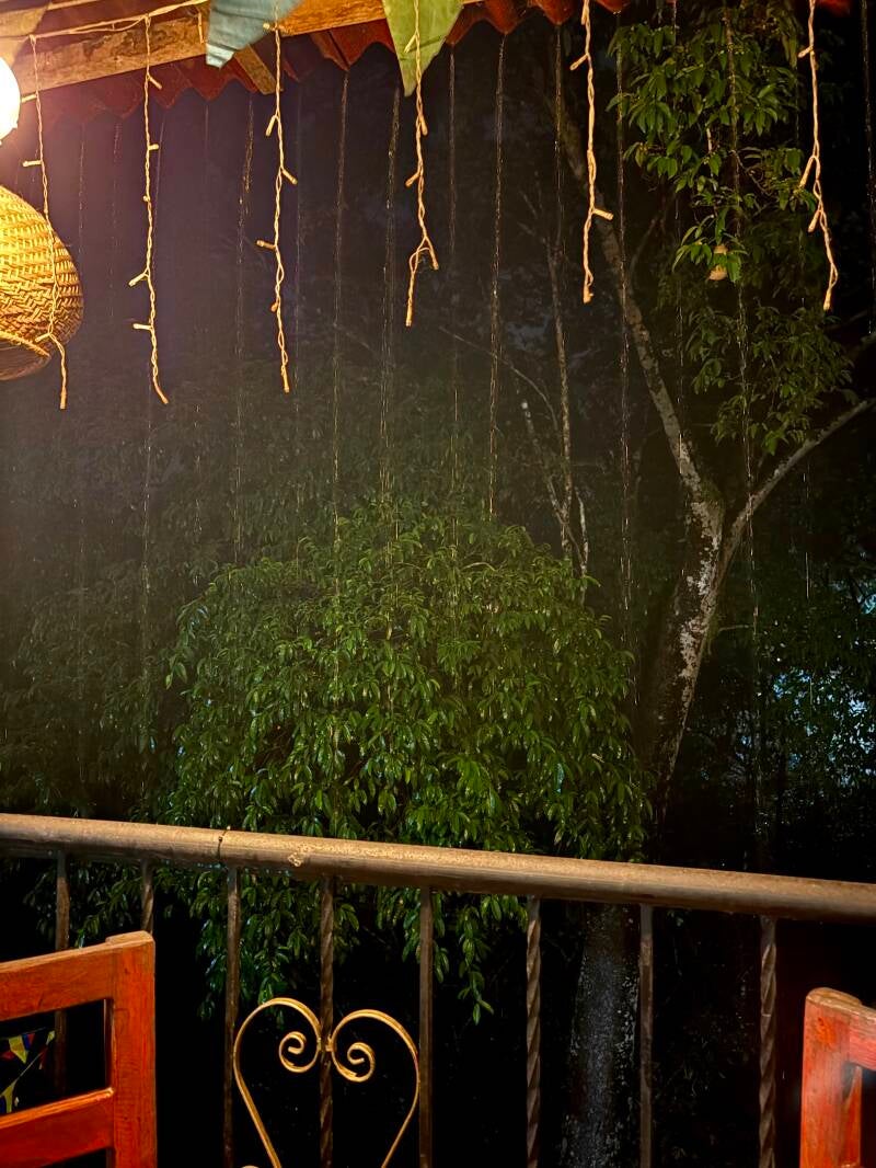 Na die beslissing, besluiten we de regen te trotseren en vinden in het dorp The Lazy Cat, een restaurantje waar WiFi beschikbaar is! Als we wat van de WiFi tappen, zijn we er na een paar minuten alweer klaar mee, maar we moeten ons plan in Minca ook weer gaan aanpassen. De watervallen, birdwatching… alles wat je in Minca doet, doe je buiten, maar dat water dat hier non-stop met bakken naar beneden komt, is niet normaal en maakt dat allemaal schier onmogelijk.