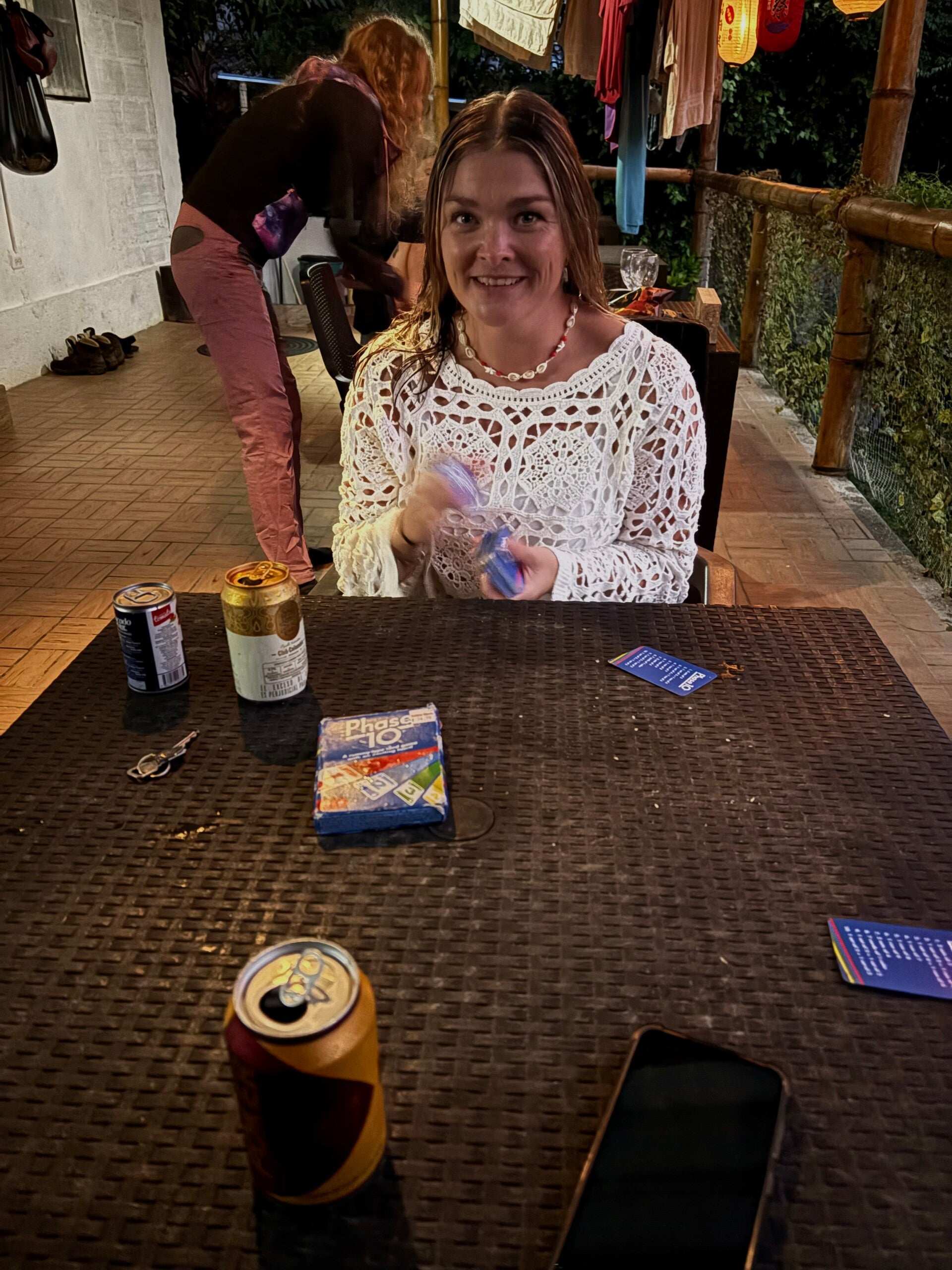 Niet in die travel influencer-netten chillen in de middag dus, maar even met het thuisfront bellen en genieten van de koelte die het onweer (want dat is het inmiddels) met zich meebrengt. Als we Geertjes broer en schoonzus en mijn opa en oma hebben gebeld, ontdekken we dat onze timing er eentje uit het boekje is: nog geen kwartier nadat we de telefoon hebben opgehangen, valt de stroom uit! Die middag komen we met z’n tweetjes wel door. Phase 10 is vandaag een prooi voor mij, alle blogs zijn weer bijgeschreven en de foto’s zijn allemaal bijgewerkt, maar doordat de stroom is uitgevallen en Minca een bergdorpje is, hebben we zonder WiFi nul komma nul signaal. Hoewel er inmiddels drie blogs klaar staan om te plaatsen, hebben we daar dus wel wat internet voor nodig. (Voor de lezer: we hebben op het moment van schrijven San Blas nog niet eens geplaatst). Ach ja, wat zou het: ze zijn thuis in ieder geval weer op de hoogte.
