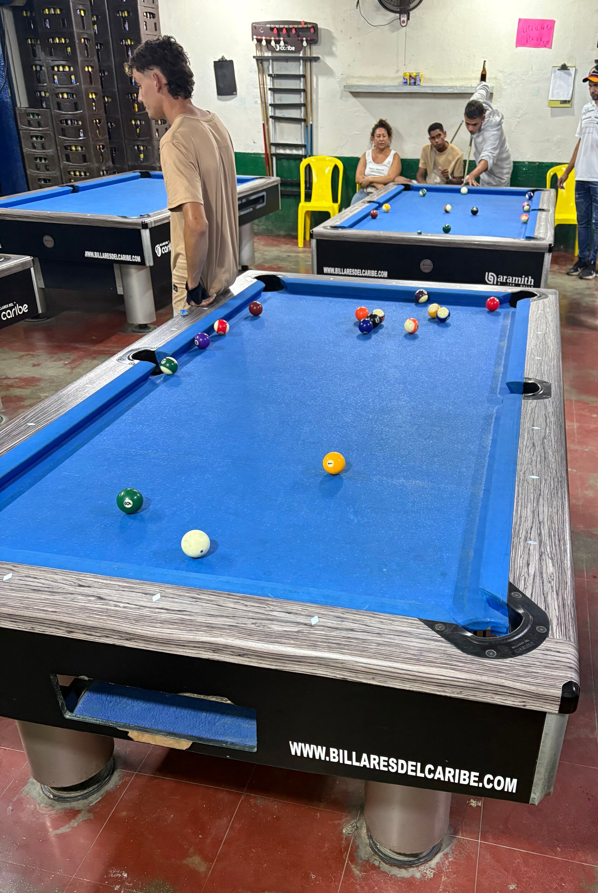 Na een halfuur zoeken, dobbelen we plotsklaps zes. Achterin een poolcafé (zo eentje met een spaarzame noodaggregaat) waar verder alleen maar Colombianen met keus staan te stoten, zien we Grace en Danielle dansen alsof er geen morgen meer komt. Kassa! We lopen naar binnen, zeggen goeienavond en lachen ons even dubbel om de bizarre omstandigheden waarin wij als westerlingen die niks gewend zijn nu verkeren – alhoewel ook verbale communicatie niet meevalt, want we zijn natuurlijk in Colombia: als we nog geen gaatjes in onze trommelvliezen hadden, dan zouden we ze hier wel gekregen hebben. We huren een tafeltje extra en poolen een uurtje. Toch nog een onverwacht leuk avondje en als we afscheid nemen en beloven dat als we ooit, al is het over 30 jaar, naar Canada gaan, we contact zullen zoeken. Binnenkort moeten we weer poolen, want de strijd tussen Geertje en mij blijft steken op een gelijke stand.