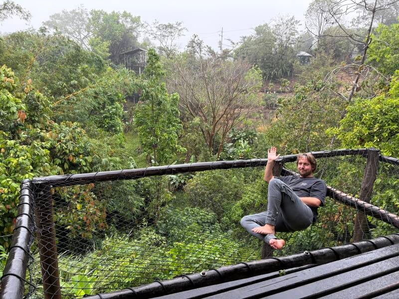 Minca is een klein dorpje aan de voet van de bergen van de Sierra Nevada, een indrukwekkend kustgebergte in Noord-Colombia, en Akainoie is een homestay waarin vier kamers te vinden zijn in het huis van Pablo en zijn gezin. Maar vooral het buitengedeelte is geweldig: we hebben uitzicht over de jungle, een jacuzzi en zo’n net waar van die boven God verheven wannabe reisvloggers in Bali maar wat graag met hun luie reet in liggen om met hun ‘ware innerlijke ik’ in contact te komen. Een net waar wij ongetwijfeld ook nog in gaan liggen, dus.