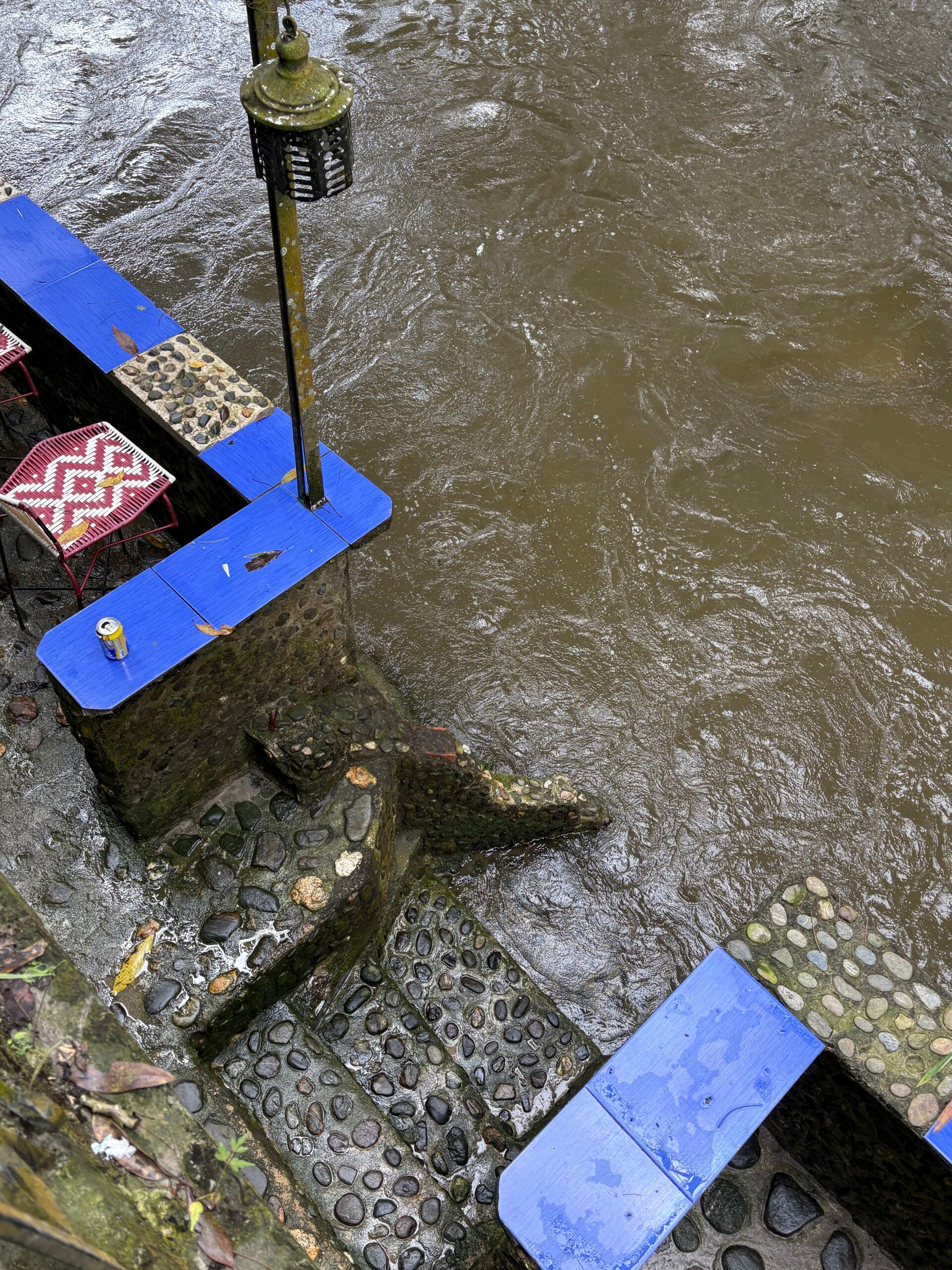 We lunchen wat aan de wild stromende rivier midden in Minca, die te oordelen aan het onderste terras behoorlijk buiten z’n oevers is getreden, lopen nog een rondje door het dorp en chillen wat in de hangnetten (eindelijk droog!), maar de luchtvochtigheid is nog zo hoog dat onze was die middag nog niet helemaal droog is (hangt er al twee dagen). We besluiten toch om het maar in te pakken en terug te keren naar Santa Marta. Donkere wolken pakken zich namelijk alweer samen in de lucht.