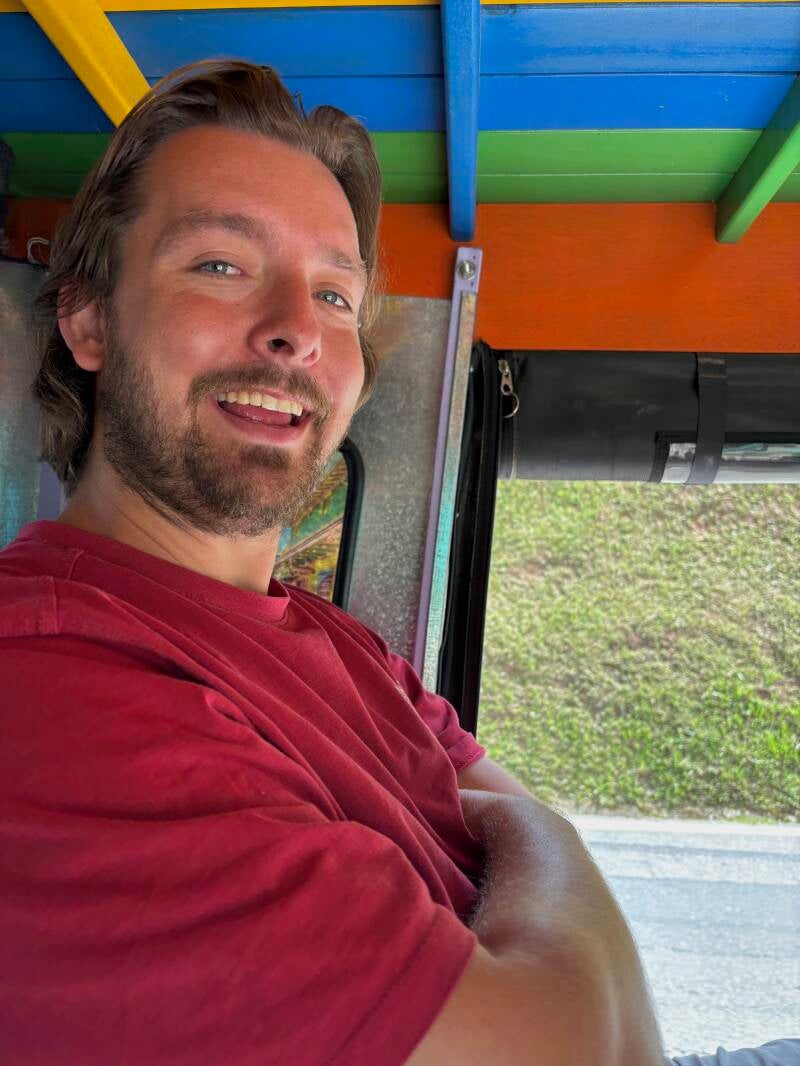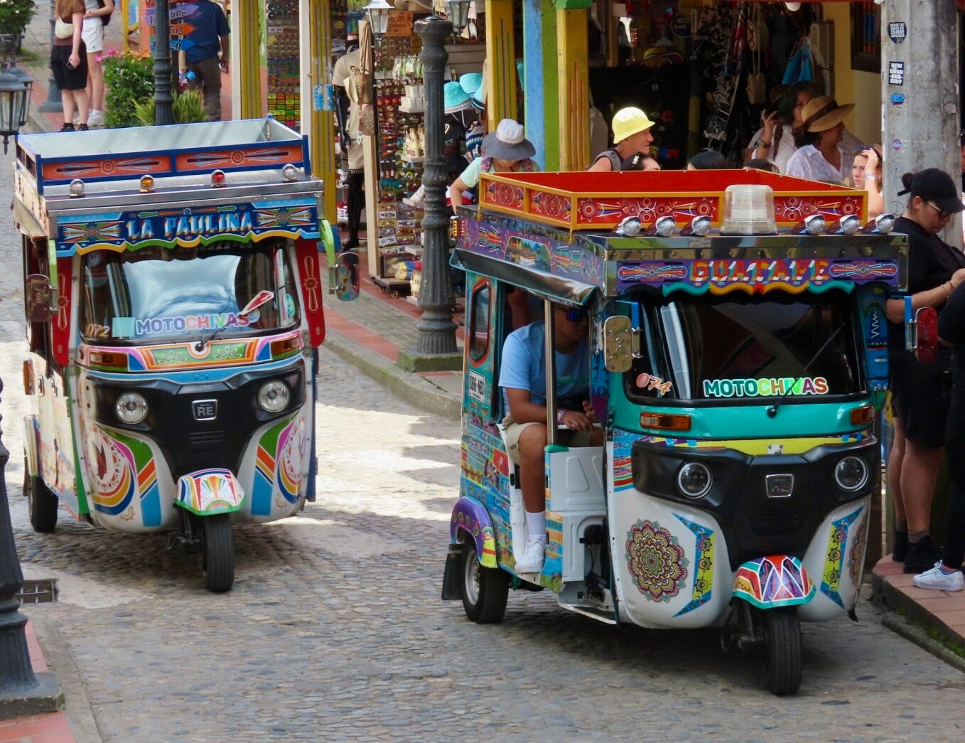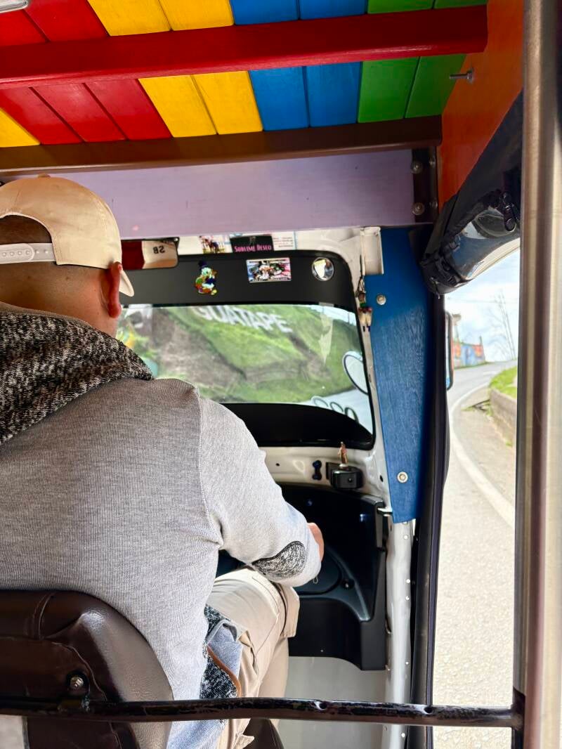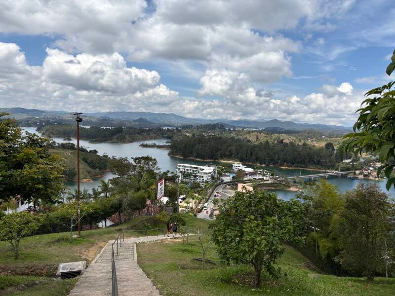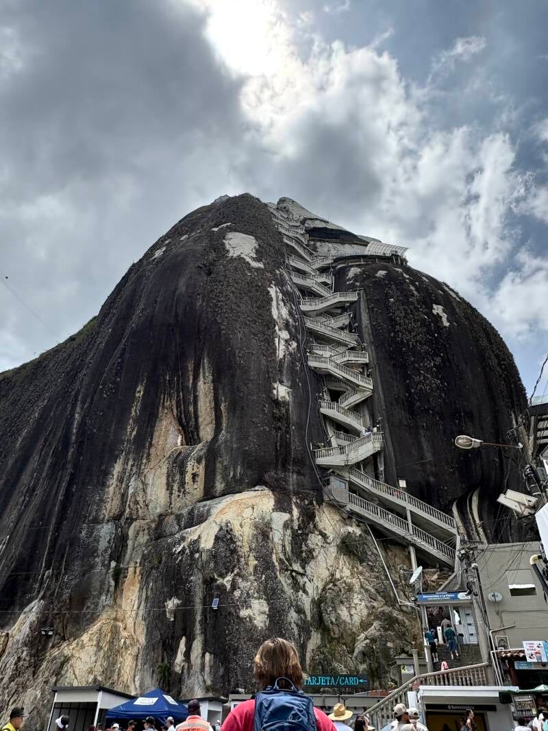 We stappen uit bij eindstation Guatapé en voorzien onszelf van wat benzine in de vorm van een ochtendbiertje (Aguila is het favoriete merk geworden), want op een kleine hoeveelheid alcohol is het maken van een dagplanning altijd net wat makkelijker. Even later is het alsof we weer in Zuidoost Azië zijn, want een tuktuk brengt ons voor een schijntje tien minuten verderop, naar de trappen die naar Piedra del Peñol leiden.