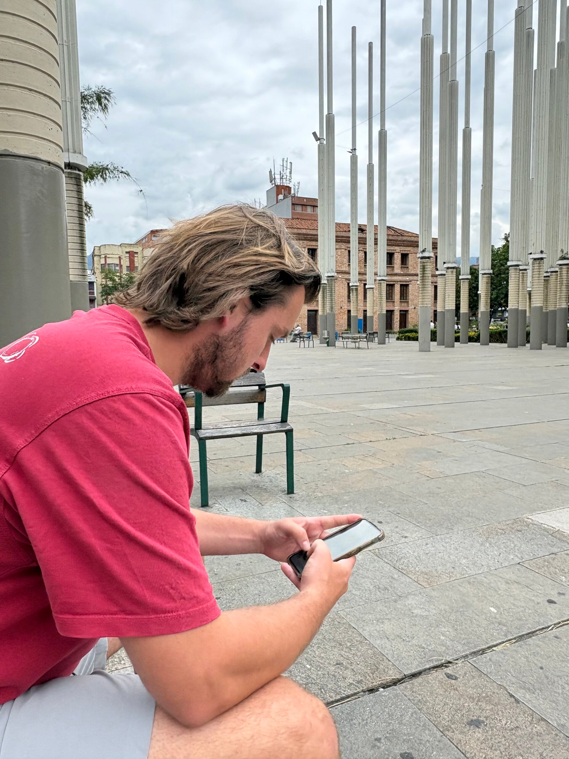 Dat is El Centro wat minder. In Cartagena deden we die free walking tour, maar daar hebben we van geleerd en in Medellín wandelen we die straattour lekker op ons eigen dooie gemakje. Maar El Centro, de meest originele naam voor een historisch centrum aller tijden, is een wijk die wat onguurder zou zijn dan de meeste in Medellín. Bij zonsondergang is het een no-go-zone, maar ook overdag is het een gebied waar zakkenrollen tot het uiterst beperkte pallet aan hobby’s behoort. Maar goed, we zijn niet van gisteren, dus het komt wel goed. We vragen Gemini (voor de 50-plussers: Gemini is AI (zeg: ‘ee-aj’), net als ChatGPT) de route van de Free Walking Tour door het stadscentrum en huppakee: de hele route ligt voor ons klaar! Wat een geweldige lifehack! “WeL oPPAsSen vOoR zAkKenROlLerS”, zegt Gemini er nog bij. Ja-ha, mam.