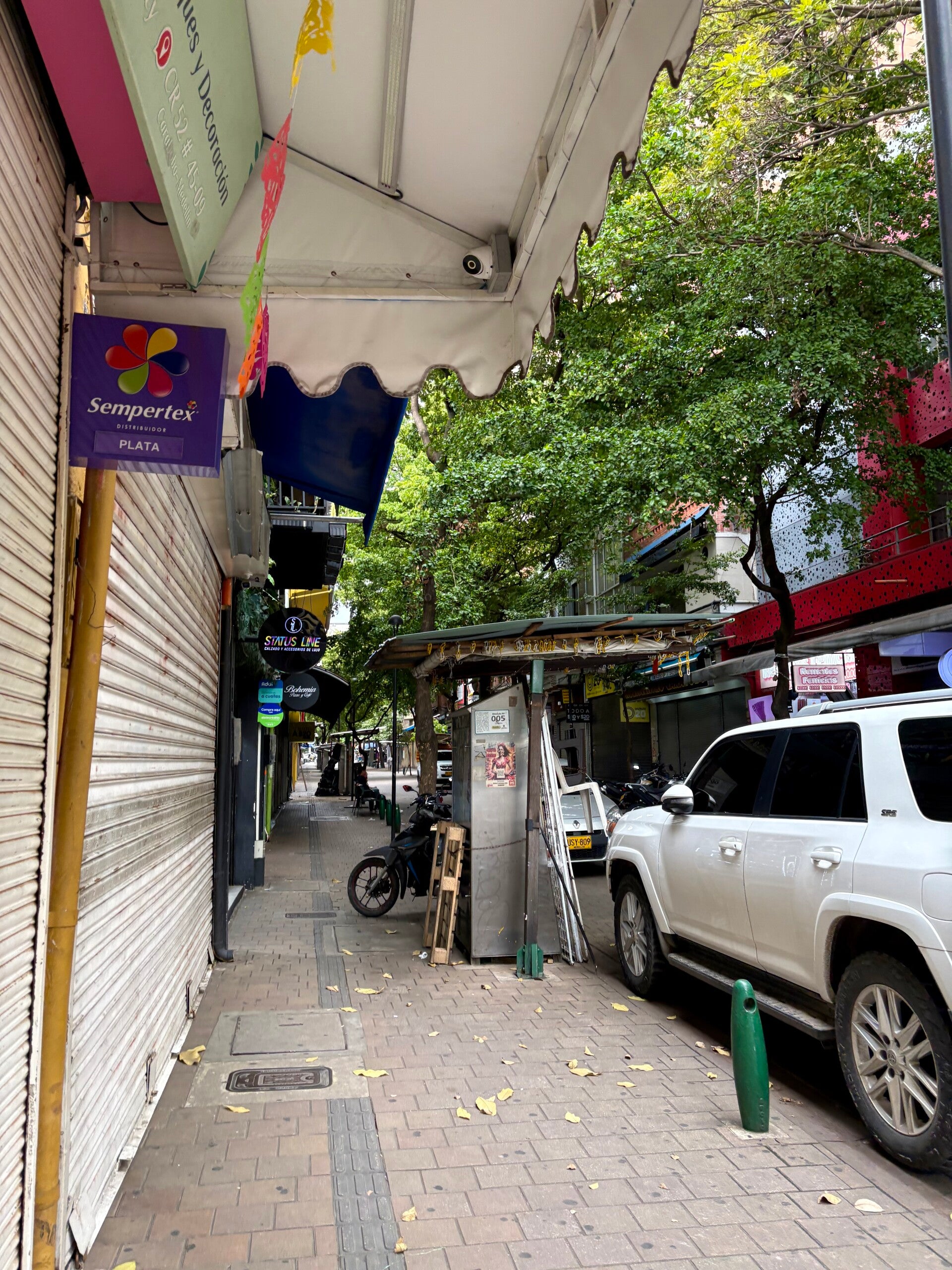 Voor het eerst sinds die avond met Danielle – onze eerste avond in Medellín – eten we weer buiten de deur. Het is tijd om die uitgaansstraat van de locals in onze wijk Laureles wat verder te verkennen. Ja, lezers, ik ben bijna manisch, maar het is gewoon zo’n topwijk. Weinig tot geen toeristen en het échte Medellín krijgen we hier te zien. We belanden eerst bij een streetfoodtentje waar we ons te goed doen aan een hamburger en salchipapa’s (die varkenskapsalon met mozarella die we ook in Panama-Stad hadden). De Colombiaanse keuken hebben we nog niet zo heel erg ontdekt, maar hij staat ook niet zo goed bekend omdat ze alles in de frituur flikkeren. Om te compenseren, kookt Geertje regelmatig en dan eten we altijd gezond, maar eerlijk is eerlijk: wij (ja, stiekem ook Geertje) zijn echt wel fan van dat goedkope spul dat we op de straat tegenkomen. Dus genieten doen we, van een biertje en Colombiaans fastfood, terwijl er op straat ineens een complete skeelervereniging langs komt geskeelerd. Blijkbaar is Colombia wereldtop in de skeelerwereld. Zo, dan weet je dat ook weer.