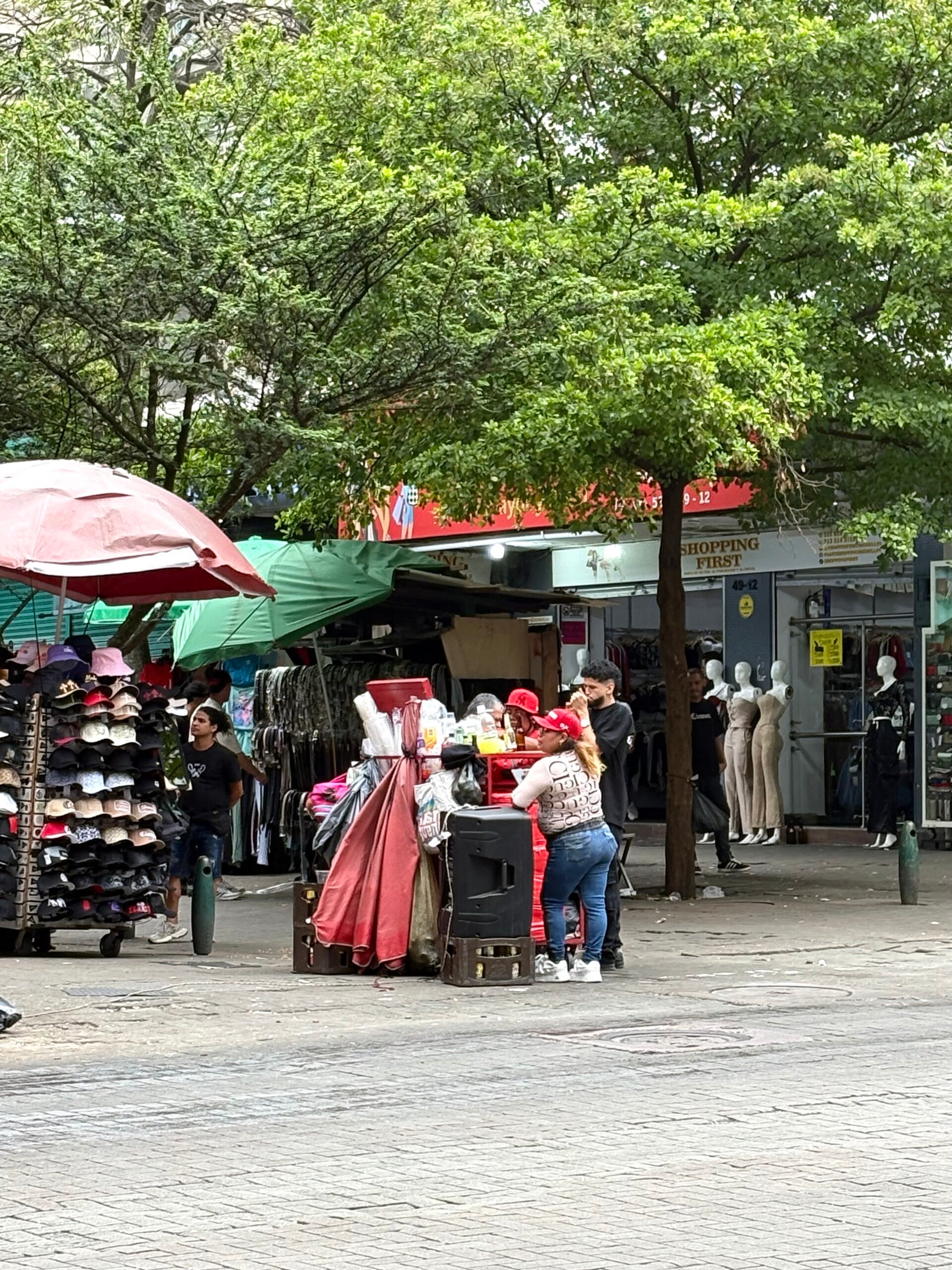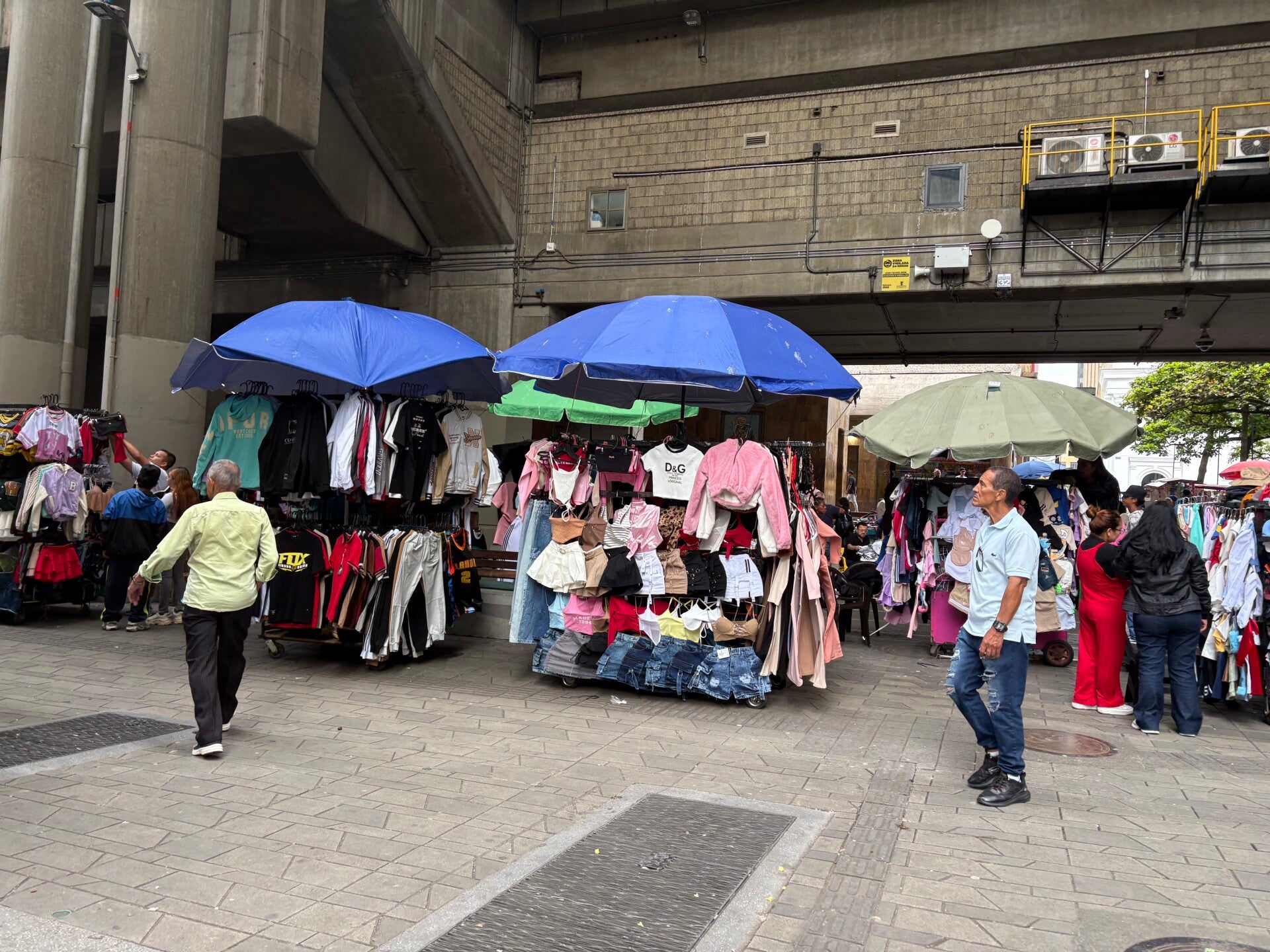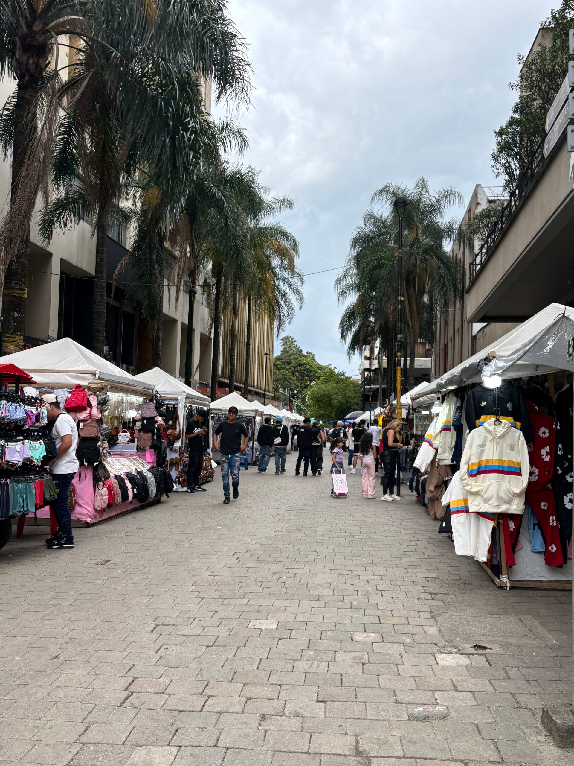 We lopen door naar het Palacio Nacional, het voormalige kantoor van de belastingdienst, maar vandaag de dag een winkelcentrum. Mooi architectonisch machtsvertoon. De weg ertoe is ook leuk. Zo uitgestorven als het Plaza de las Luces was, zo levendig maakt de markt de straten die richting en voorbij het Palacio Nacional lopen. Wel op onze hoede, want dit zijn natuurlijk van die chaotische plekjes waar die zakkenrollers lekker in hun handen wrijven als er een paar onoplettende toeristen langslopen, maar zoals het tot nu altijd in Colombia is geweest: het valt allemaal reuze mee.
