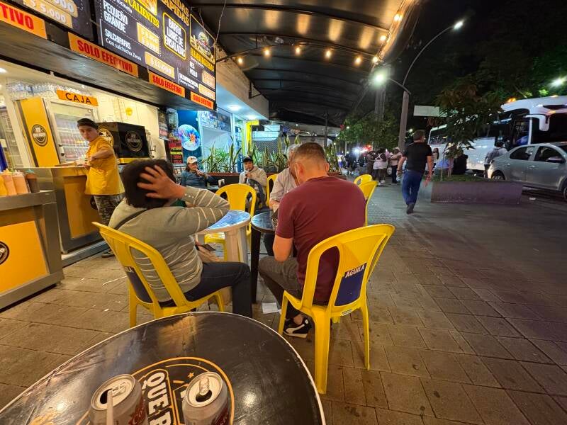 Waar we ook fan van zijn, zijn de bierprijzen. Na de hamburger en salchipapa’s (die samen met een drankje 9 euro in totaal waren) sluiten we dag af bij een nieuw dieptepunt. Of ja, qua prijzen bedoel ik. 4000 peso’s (€0,91) voor een ijskoud flesje Aguila is voor het humeur namelijk absoluut geen dieptepunt.